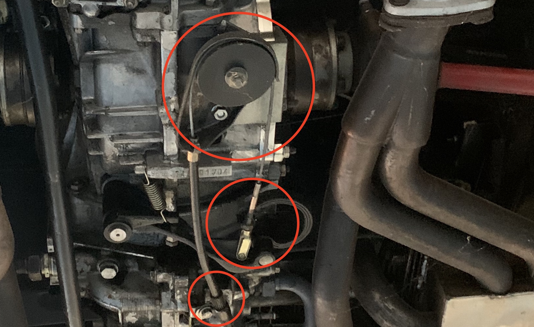 For those 'newbies', a warning/recommendation; This isn't necessarily fun or easy, but is a vital skill to have for basic maintenance / roadside repairs. Almost every event that I've been to, someone has either had a clutch or accelerator cable break or had to make an adjustment on the side of the road / at the hotel. It's something you need to know as a 914-owner. I'm only going to generally describe connecting the cables to the transmission or throttle, because my car and drivetrain (964 3.6 and 915 trans) is most likely not the norm, nor is my cable setup (Clutch cable unknown / Accelerator cable from Patrick Motorsports). First time installation is easy enough as you probably won't have the pedal board in yet. For me, it easiest to run your cables through the center tunnel (there are tubes inside the center tunnel for clutch and accelerator) BEFORE hooking them up to the throttle or clutch, but there are several ways to start. NOTE: At the 'Drivers end' of the center tunnel is an access window. I don't usually use it, but it might make things easier reaching into the tunnel. ------- For the accelerator: You can start either in the engine bay and pull the cable through the sheet metal OR start halfway, beginning below the car and feeding the cable into the tunnel and then under the engine through the sheet metal. I started halfway and fed the accelerator cable through the tunnel first. Once it's all the way through, move to the pedal area and you should find the cable laying on the floor of the tunnel, close to where the drivers heel will be. Mine was a bit elusive this time around, but you'll get it. Once through, place the 'ball end' connector and locking nuts on, and connect it to the lever on the right-side of the pedal cluster. You should notice that the 'lever' has two ball-ends; One ball-end is for the cable which faces the passenger side of the car (described in the previous paragraph) and the other is used for a small rod that has a ball-end on the pedal cluster side and a rounded end that fits into the back of your accelerator. I usually wait until the clutch cable is hooked up to install the rod and accelerator, it makes working down there much easier. For the clutch: First, I slide the clutch cable into the tube at the firewall, and it should exit out the tube near the pedal cluster, just like the accelerator. It's easy cross the cables when hooking them up, so make sure they aren't tangled, because this will give you 'revs' when you're trying to shift. Typically, because it has a longer threaded-end, the clutch cable it easier to find. Before you put on the clevis that connects it to the pedal cluster, put on a nut to make sure it doesn't move (I actually use two). Push the clevis so that either end is on the outside of the pedal connection, and then put your locking pin in, and it should 'swing' and lock-against the cable. At this point, you need to decide whether-or-not to put your pedal board and accelerator. This part is pretty easy and self-explanatory, but I will say that it is much easier without the accelerator pedal in-place. ------- Now, we move back to the transmission and engine. Make sure the cables aren't crossed, and route them to their appropriate connections before securing them to the bottom of the engine with a hose clamp or similar piece of hardware. For the clutch on the 915, it's pretty easy to connect as it simply needs the clutch-stop piece put on, goes through the pulley, and then has another pin and clasp to finish up. All shown in the photo. For the accelerator, and connecting to a 3.6, it's a little more tricky. I had to feed the cable up and through the 914/6 sheetmetal and route it while trying to keep it clear of all the fuel-injection hoses and wires. Patience here, it took me the better part of 30 minutes to make sure nothing was tangled or wrapped around an engine hard-fuel line. Once past the initial cluster of wires and cables, the cable will go through a zinc-plated bracket located on the intake manifold, just below the throttle body (photo attached, circled in red). You should find that the cable has a rubber grommet that secures it to the intake manifold. The grommet isn't so-much a problem, but it can get tight working in there. Give yourself plenty of light and space, and take your time. From there, and once secure on the grommet the cable will go through an 'arm' that controls the throttle position. While you'll still have to adjust both cables to get the proper throttle and clutch response, thats a post for another time. For now, congratulations, you're done. (IMG:style_emoticons/default/bye1.gif) |