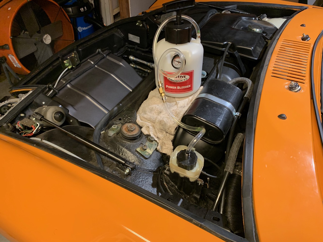 ------- Anyway, moving on from that I've been plugging along as the car was getting prepped and focused on bleeding the brakes, setting the e-brake cables and setting the proper venting-clearance on the rotors. For venting the rotors, check out this thread that I started > Thread Here As for bleeding the brakes, something that was left unclear to me from various threads - bleeding the Master Cyl. (MC). If you have a new MC, or a substantially new or refurbished brake-system make sure to bleed your MC. This was unclear to me before, and when I changed from 21mm to 19mm it gave me a few problems when bleeding my brakes. @iankarr has a great video on this, and it's pretty straight-forward >Video Link Here As for bleeding the brakes, I also referenced another video from @iankarr ( Video link here ) because I purchased the same power-bleeder. I won't go into a whole explanation, because the video is pretty clear, though I will leave some notes that I found useful. I'm sure that I made ALL the mistakes and had the worst-luck while doing this, so check out my list below... - If you're unfamiliar with this watch Ians video a few times. Good? Now watch it again. - Before you start, have extra towels and water ready. Have MORE than enough, and stage them around your car. This will be handy if you spill. - Most important: Make sure your brake-fluid reservoir is solid with no leaks or cracks and same for your lines and such. I had just started bleeding the system the first-time, only to find a 'crack' in the reservoir just above the plated retaining strap. Very annoying to stop what you're doing, get a turkey-baster/syringe, drain the system, install a new reservoir, and start all over. (IMG:style_emoticons/default/headbang.gif) Further, it becomes very messy and stressful, especially with all that brake-fluid around. - Check. Your. Reservoir. Lines!. This relates to the above point. I found that, in addition to the crack I had lines that were completely deteriorated. Suggest that everyone buy new rubber brake hose to connect the reservoir to the lines and new hose-clamps. (Link to brake-lines here) - My system had already been bled before with blue brake-fluid. As it still had fluid in the system I found this helpful because when the new, clear, fluid came through I could visually tell that the system had been 'flushed'. - If you're bleeding your brakes after a restoration or major swap (new calipers / MC), make sure to first bleed the MC, then add more fluid before bleeding your brakes. I made a similar mistake, and when bleeding the brakes let the reservoir run dry and had to start over. - Some call it an urban myth, but I found it helpful to tap the brakes and brake-lines while bleeding. I think the vibrations help get out any 'stuck' air-pockets. - I brought the pressure on the power-bleeder up to 7.5 PSI, and had no problem. - My car has early 'S' brakes. If you have the same or similar 'big brakes' you need to bleed both-sides of the caliper. Order is still the same as bleeding 'stock' brakes, though with a minor adjustment; Right-rear caliper, Left-rear caliper, Right-front inner caliper, Right-front outer caliper, Left-front inner caliper, Left-front outer caliper. (IMG:style_emoticons/default/bye1.gif) |