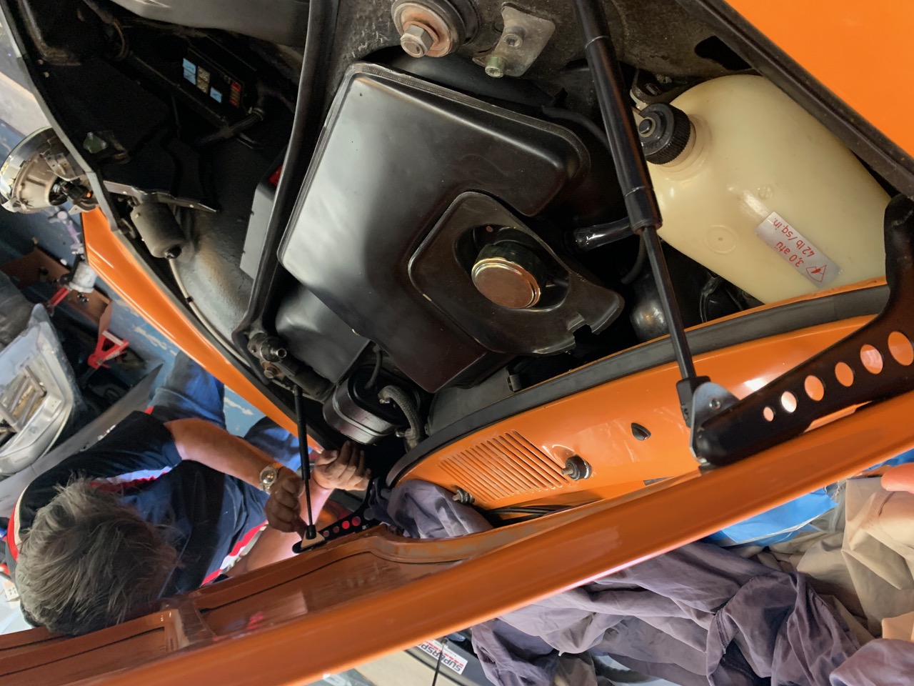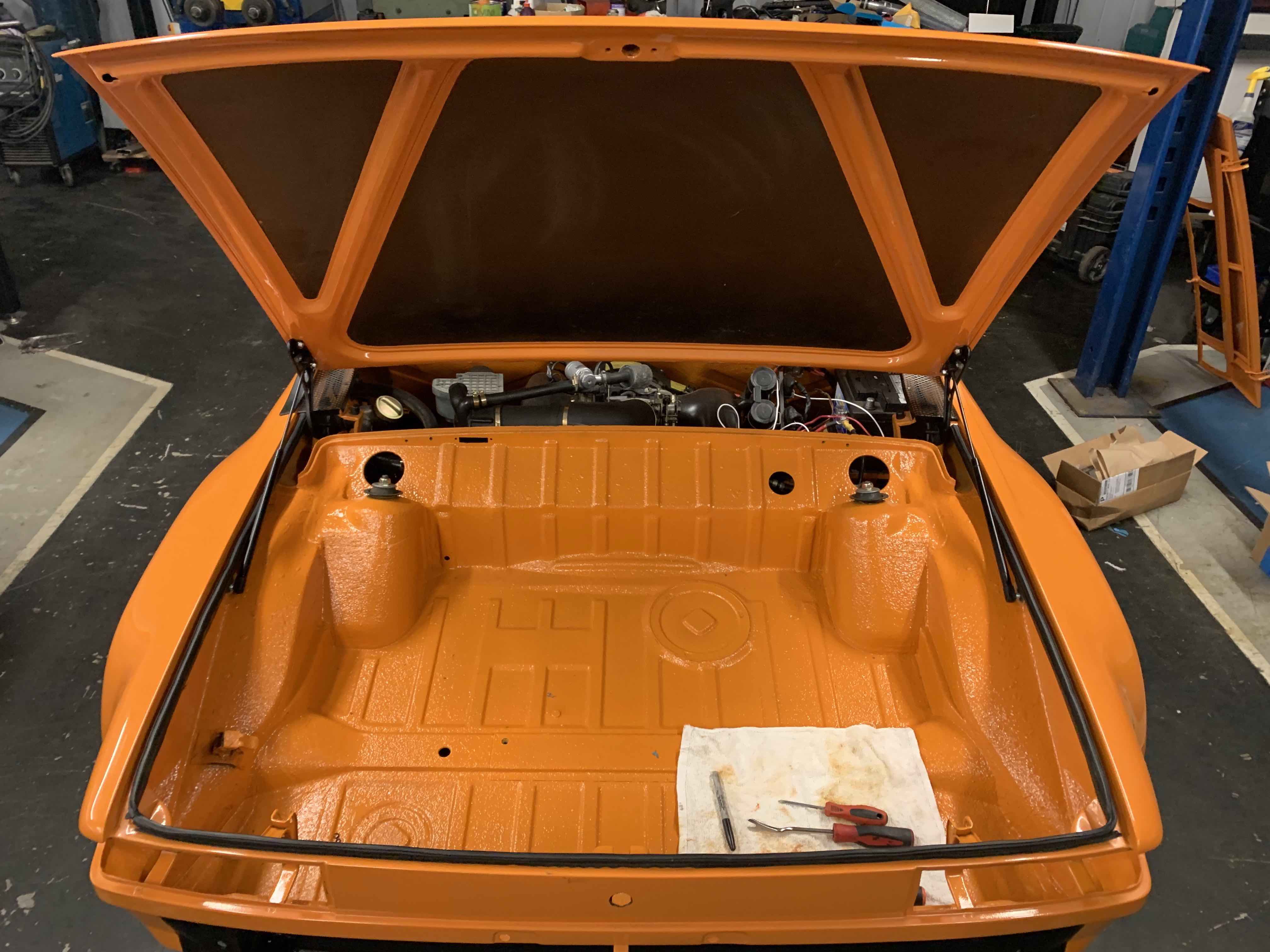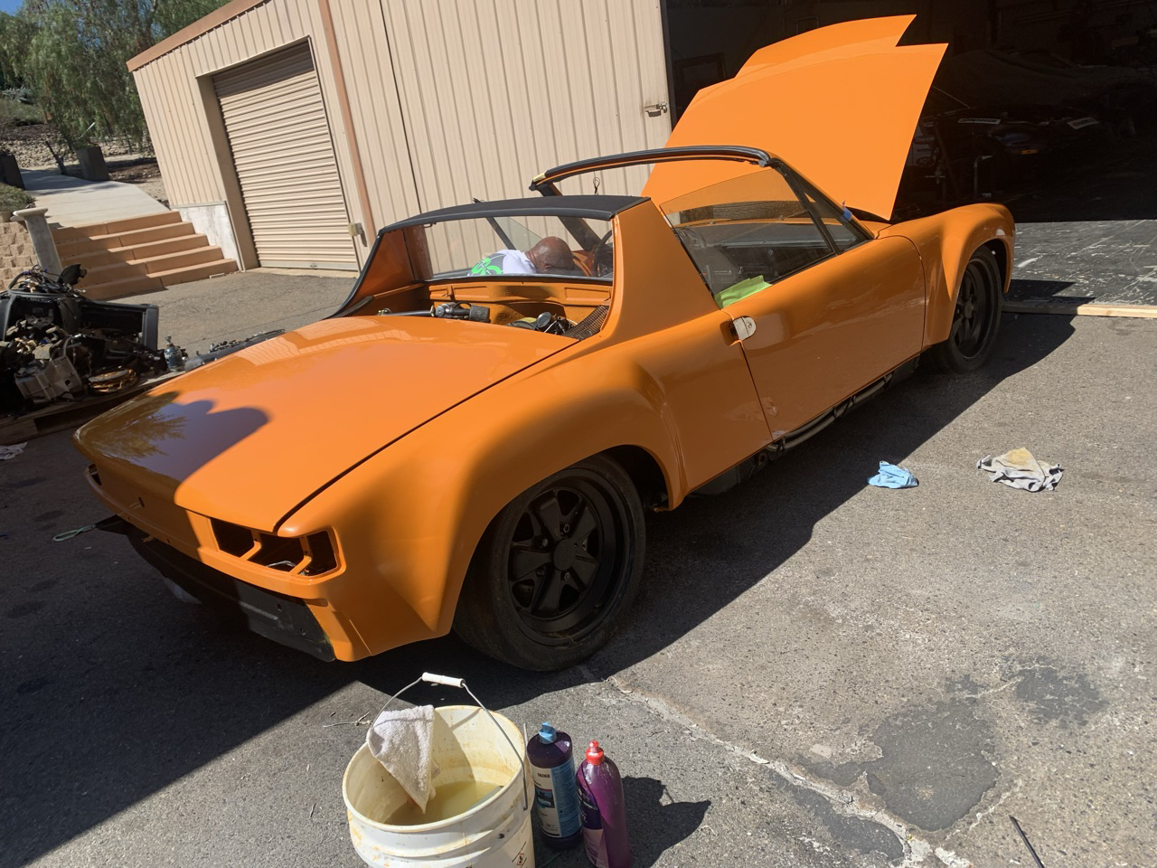 Glad the videos helped. And tapping the calipers isn't a myth at all. There are lots of places for bubbles to hide. If you're replacing the calipers, do whatever you can to shake them out. Drive back and forth over railroad tracks a few times (once the car has a firm enough pedal to hit the road). There are a few other things I should've highlighted more in the videos āĀ Brake fluid will ruin your paint. Seriously. And Fast. Maybe in less than 30 seconds. And it's not something that compounds out. Make sure you have a way to rinse off any that gets where it's not supposed to go before you mess with it. ā Per Eric Shea at PMB, freshly rebuilt calipers need a little time to break-in before the pedal becomes as firm as it will get. The new seals pull on the pistons a bit and they need to relax. I'm making a full brake line and caliper video for my BB build. Coming soon! @iankarr - Thank you SeƱor Ian, keep them coming! (IMG:style_emoticons/default/cheer.gif) Work continues - Very happy with how all the final cut and polishing is going! Making sure everything matches, we started putting on the front and rear hoods. Only hiccup I ran into is the Camp914 Hood shocks. It seems like it takes WAY too much force to push the hood-down and, when I moved the mounting point for the hood to the bolt that is 'closer' to the Driver, the geometry of the setup causes the shock to run out of room before the hood is completely flat AND not lift completely. This would made refueling impossible. If I remember correctly, this was a pretty-popular kit, so I think I'm getting something wrong. Any input is appreciated, but for now, I'm going to order the 914Rubber hood-springs as a 'backup' and leave the hood without the shocks so I can align all my gaps, and get this thing on the road! On another note, I fall in love each time this car gets polished. As popular as it is, 'Signal Orange' is the color these cars are supposed to be. Go ahead.... Try and change my mind! (IMG:style_emoticons/default/shades.gif) |