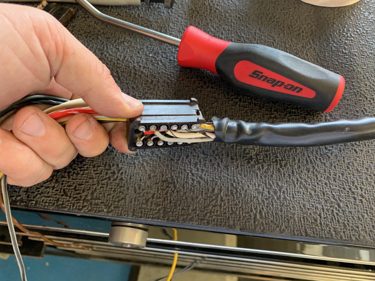 Shout-out to @jim_hoyland for coming in with a replacement connector after finding out mine was damaged. Now, it seems like its just a matter of connecting the right-wire with the right function (Turn signal, High-Beam, etc.). |
