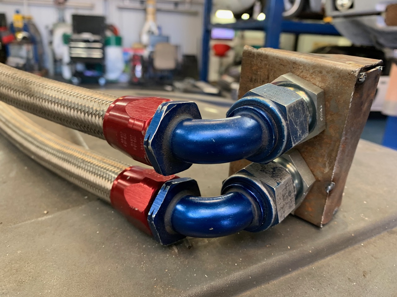 After running the lines BACK along the passenger side, I had to cut each to a shorter size (they were originally a 'home run' from the tank/engine to the thermostat) and fit the 90º AN12 fittings. For those following along, this is bear of a job. I hate putting new fittings on SS braided lines, but here we are. Also note, I've included a diagram for reference for those, like me, that were/are unsure which direction the oil flows within the system. ![]() ![]() ![]() ![]() ![]() ![]() ![]() |