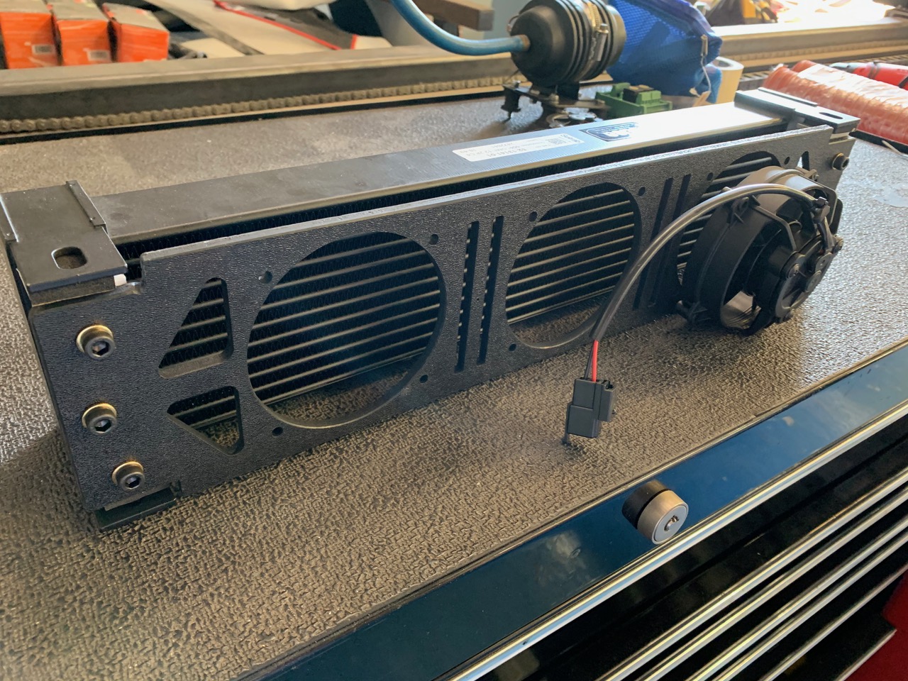 As I mention on the thread, it's important to me to have a fan setup as my 3.6 has no onboard forced air and I live in Southern California and am often subject to heavy traffic. Eventually, I settled on a multi-fan solution, with a cooler and thermo switch from PMS. Attached image(s)