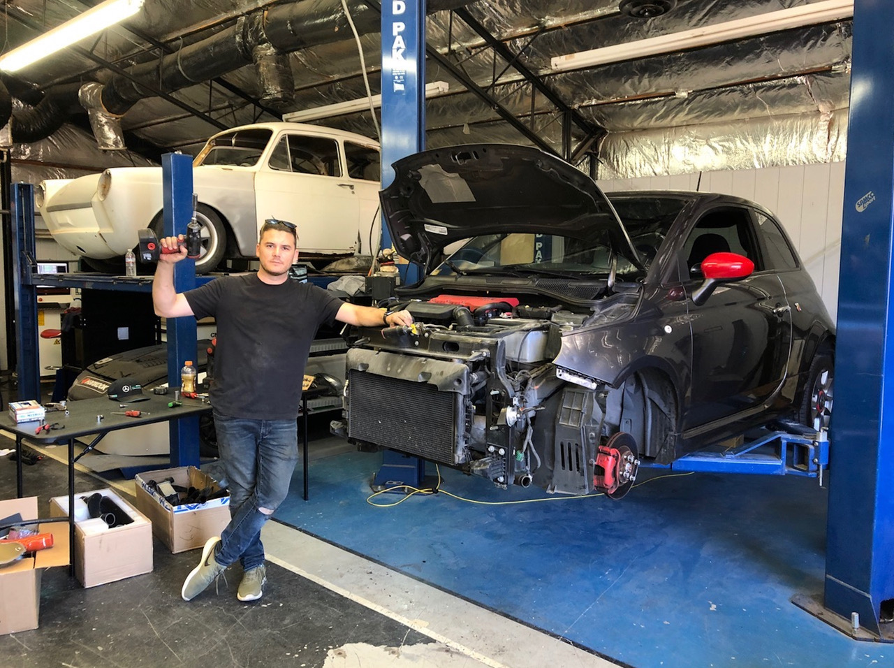 Took a bit of time, and the garage 2-post lift, to help a close friend last week with his project; Installing a large (read VERY large) front mount intercooler, advanced air-intake, and other mods on his Abarth. As this fits the 'very cool' category, I thought I'de share a few progress and 'end' photos on this thread. Enjoy! |