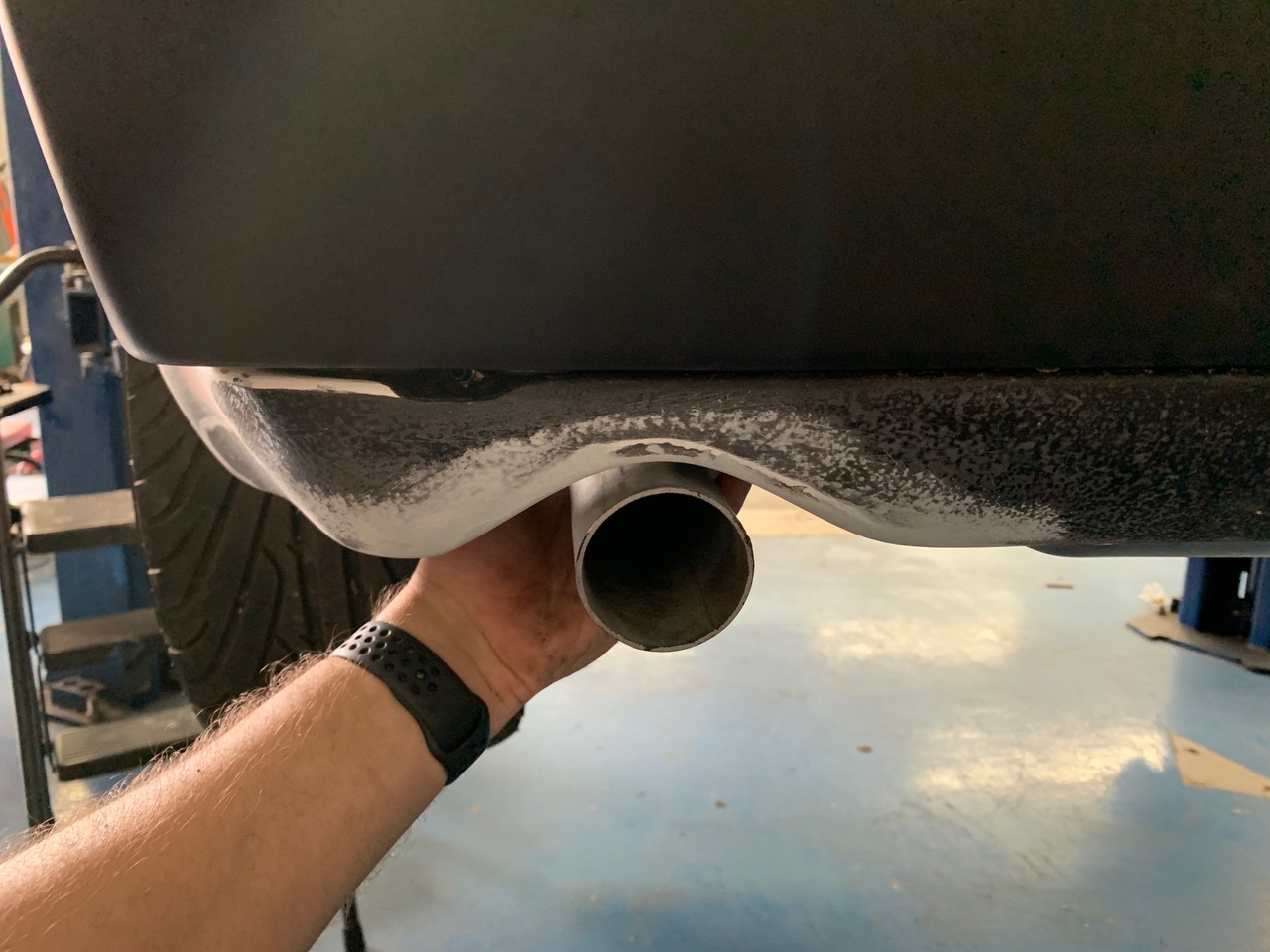 As mentioned in my previous entry, fitment of the rear-valence complete. Last weekend was dedicated to to modifying it to accommodate dual exhaust, and I'm very happy with the result. Once again our modeler has knocked it out of the park, duplicating the cutout to both-sides and adding the proper 'lip' around the cutout. As opposed to the previous setup, where the exhaust was exiting out of the drivers side at an angle, the dual setup will have a more subtle 'straight out' exit. (IMG:style_emoticons/default/piratenanner.gif)