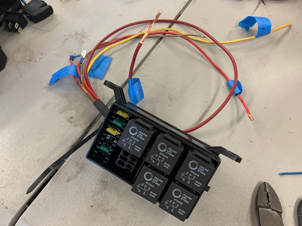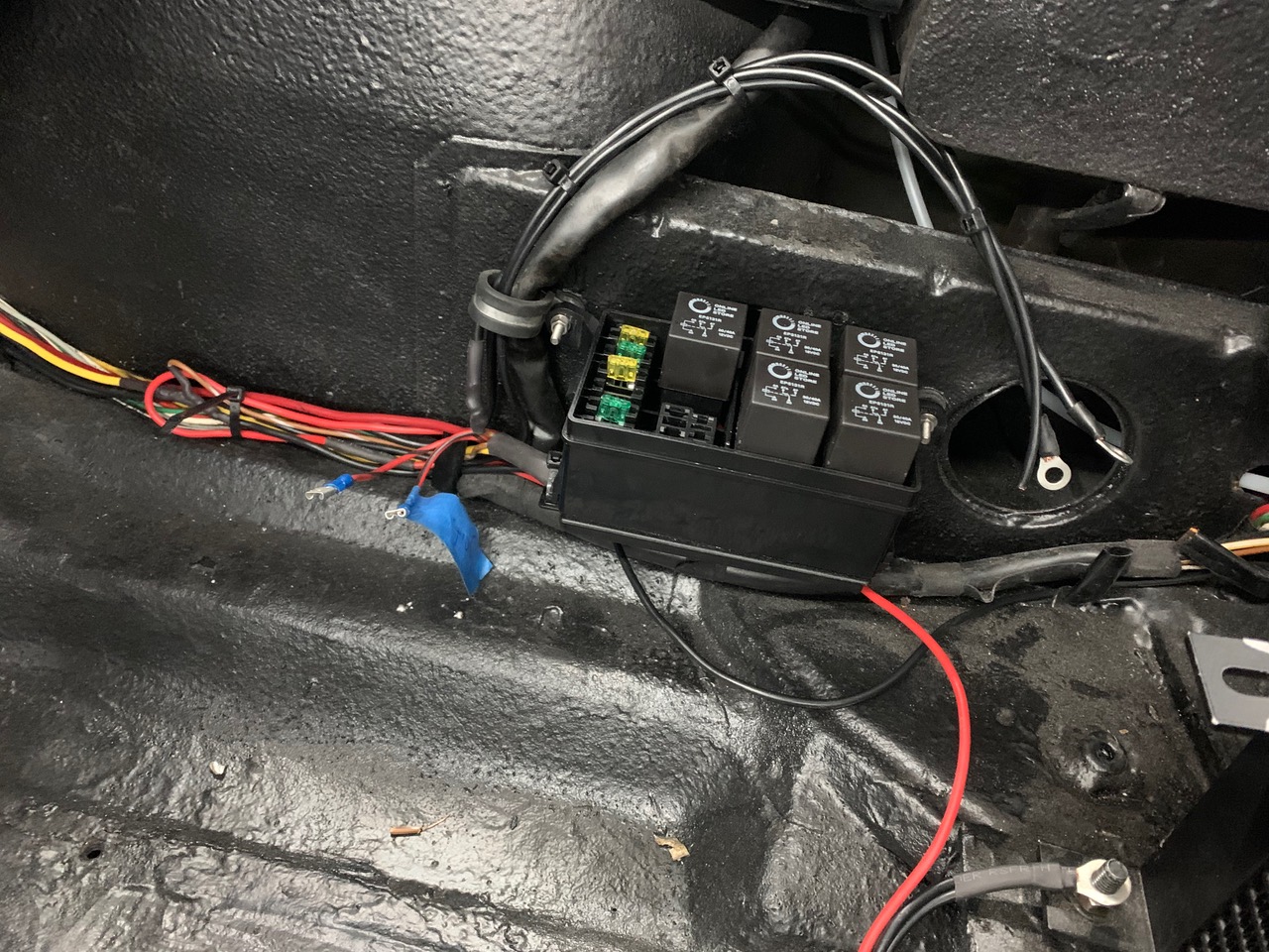 Hey world! Long-time-no-post, but I'm still on it! With the (temporary) ease of travel restrictions we saw in the Fall, I've been traveling a lot, but have still found time to carve-out a few weekends here and there as well as visit a few new-places. More on that later. Work continues on the car, and I've been focused on the new equipment added to the front trunk, and sorting out the system of powering the new parts, relays and systems. First up, I mentioned that I purchased an aftermarket relay-kit / project box. I've since wired this with 2x configurations.... - The three top relays are 'always' on. I've left 2 'open' for now, for whatever I want to install in the future (air horn, things like that) and the first is for the oil-cooler fans, with the thermo-switch (located on the passenger side) located on the GND leg. - The bottom two relays come on with ignition, specifically for items like the fuel-pump. I've left 1 extra 'open' for now, and am not sure what I'll use it for, but nice to know it's there. Once I bench-tested everything, I set the box into the trunk and soldered all connections. After I test, this will get wrapped to look like the stock harness. (IMG:style_emoticons/default/bye1.gif) |