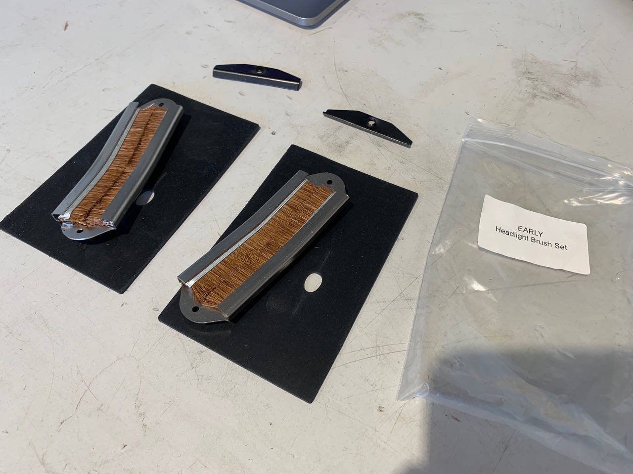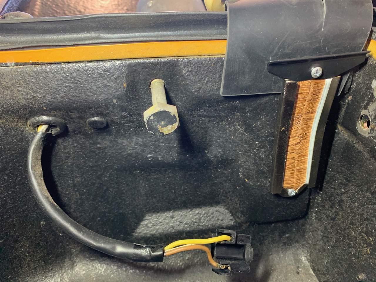 First up, I thought I would attach the parts-stash I have from 914Rubber. Though I originally installed the headlights, on my last order I received a set of early headlight brushes. While I thought I could install the brushes and rubber flap while just removing the arm.... I was fooling myself. For anyone trying to also do this, make it easy on yourself, Man... Just take-out the headlight and arm. It will take you 10-15 min, and will be alot easier. NOTE: Whenever working on, adjusting the headlights - DISCONNECT THE BATTERY / POWER. Those headlight motors will easily bite your hand, no joke! Remove the headlight 'eye-brows' and covers, then the 3-bolts on the inside of the trunk (first photo), the 2-bolts on the inside of the fender, and finally the arm thats connected to the motor. Voilá! You can now work much easier. Though my car is a restoration, this is also a great opportunity to check your headlight-buckets. It's not at all uncommon that the drain at the bottom gets clogged with dirt and leaves. Once everything is open to the world, the installation of the brushes is pretty-straight forward. Make sure to use the rubber piece included and line up the slit in the rubber with the center of the brush. When you're done, it while lay like a flap over the brush and minimize water splashing into the front-trunk area. Will it fail eventually? Yes - it's designed to, and cheap to replace. With that through, follow the same procedure in reverse to assemble the headlight system. When you get to the end, and you feel that your headlights aren't even, you can check by turning the black nobs on-top of the headlight motors. If that small adjustment doesn't work, you can also disconnect the 'arm' that connects the motor to the headlight assembly, make sure it's completely 'straight' when the headlight should be in the 'up' position. First picture shows the wrong position, second shows the correct. Final Note: If you're doing this job, it's also a great time to replace or check the following... - LED Headlights - Headlight Enclosures / Lenses - Turn-signal Grommet / boot - Headlight Relays - Your ground points - Located on the back of each headlight. (IMG:style_emoticons/default/bye1.gif) |