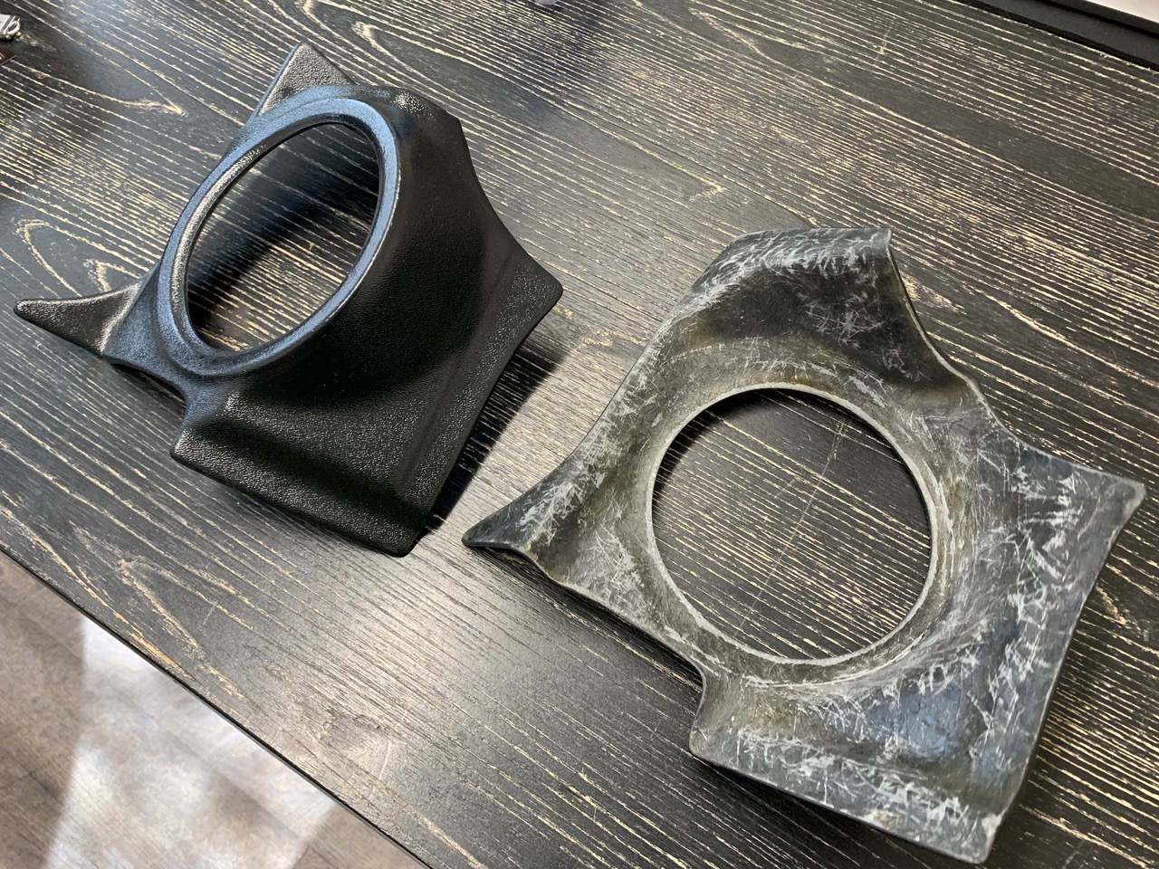 I was finally able to start to overcome a pretty-big hurdle and found a shop (one that is familiar with this and the previous black-car) to finish-off the wiring and get everything running! (IMG:style_emoticons/default/smilie_pokal.gif) Meanwhile, while the car is getting the professional treatment I'm using this time to try and catch up on the miscellaneous items. First up, finishing up the sound-system peripherals. Luckily, 914Rubber makes this easy with their thermally formed speaker-pods. Unboxing these, they work pretty well, and allow you to use a modern 5-inch to 6 1/2-inch speaker. (Link to 914Rubber speaker pods here) The ONLY downside to these units is that they are made out of thermal-formed plastic, rather than something more sturdy like fiberglass. While a great jumping-off point, this makes the end product a bit flimsy and hard to work with, and doesn't leave the best finish around the edges. To fix this, I asked our fiberglass modeler to apply a reinforcement layer before cutting out the holes for the Pioneer speakers. Regarding the speakers, believe I went to the 'maximum size' of 6-1/2", and it's pushing it a bit. I'll work on the general fitment later, but for now, believe I'll have to add a 1" ABS 'ring' to accomodate the mounting holes. In any case, believe these look MUCH better than the originals and love the fact they allow for a bigger and more modern speaker. (IMG:style_emoticons/default/bye1.gif) |