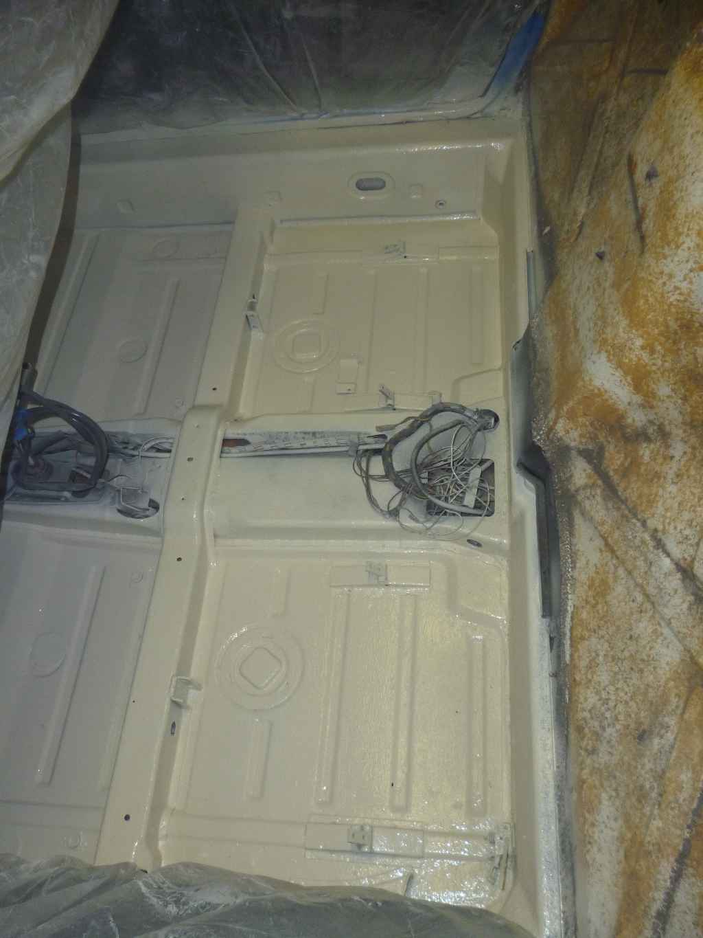 Figured I needed to update my resto thread with the latest. After deciding to redo my interior floor after finding some rust by the seat mounts. I pulled all the tar mat off the floor. Wire brushed everything & treated the small rust area's. I had one little 1/8" hole I had to fill. I got that all done & moved onto the rear trunk.