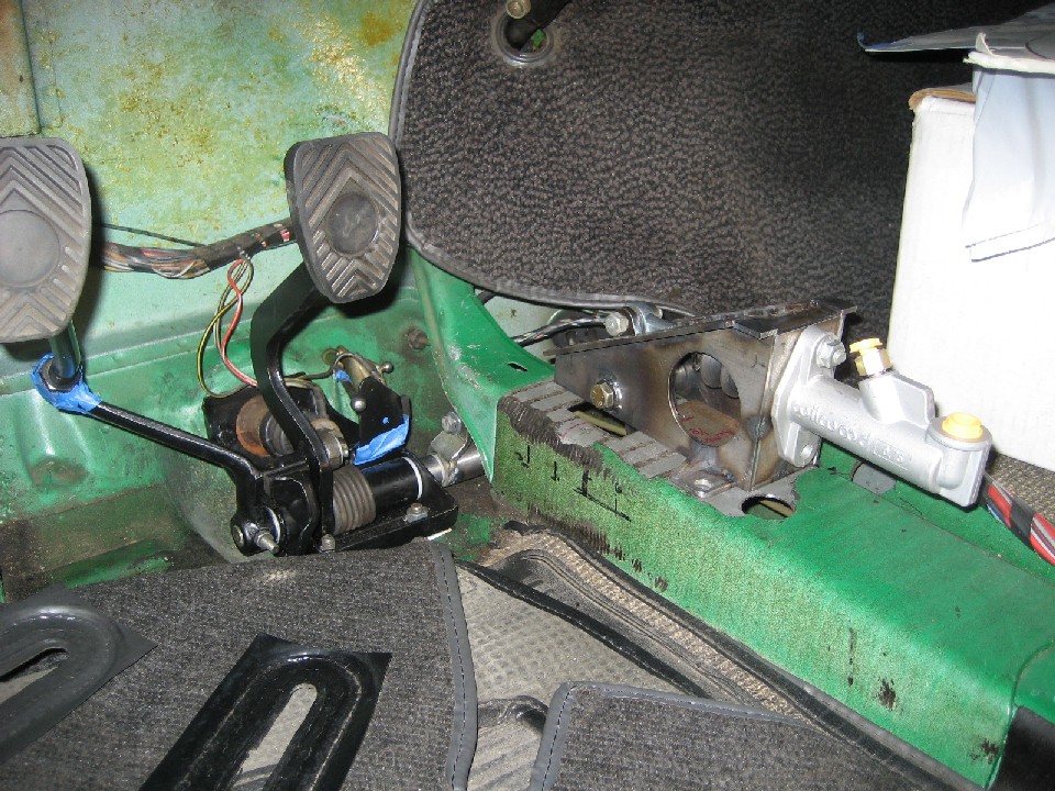 I have the Tilton triple pedal assy - actually one of the first ones they built. I am 5'10" and I had to run the super short masters to get enough leg room with the seat against the firewall. With the tube chassis now I of course moved it a bit further forward. It makes for a slick install, but on the bird board I know there have been a few cars that guys have used the late pedal assemblies with the clutch master and they just have to cut a hole thru the firewall for the clutch master.