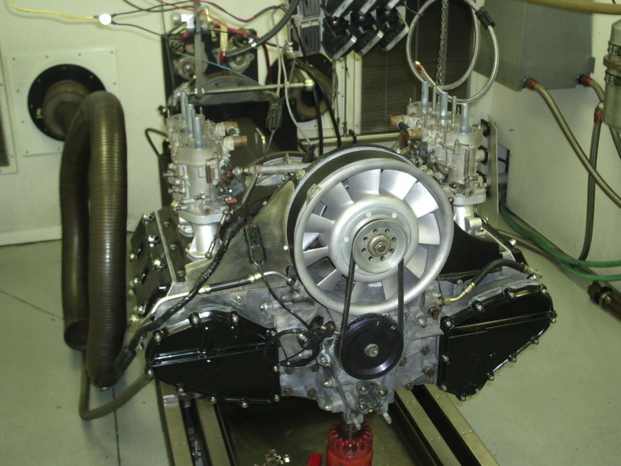 My other motor that will be done 1st will be a 2.7, Single-plug, RS P&Cs, aggresive cams (don't have the specs handy), balanced factory rods, Weber 40's on a magnesium 7R case that has already been machined, shuffle-pinned etc. I expect this one will be 250 hp. Both motors will be Dyno'd I base the projected HP numbers on the last motor I had built, which was a 2.5 Twin-Plug. T.C. here is the 2.5 on the Dyno |