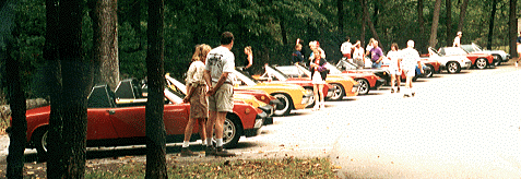 1995 1st Mid-West Renegade Festival at Lake Ozark Missouri by Rusty Payne The Porsche 914 Club had its first Mid-West Renegade Festival at Lake Ozark, Missouri the weekend of September 15th. There were a total of 16 cars, and 34 people, not too bad for a first time! 914ers came from nine different states to attend. Club President Alex Buller and Barbara LaFargue even drove their "sixer" all the way from California for this first ever event. Somebody upstairs must like us 914ers, as there was only a very light rain on Friday night, and the conditions for the remainder of the event and drive home was perfect 914 weather (tops off - mid 70's). Pre-event activities consisted of clean, polish, and "Advanced Porschemechanics". Event organizer Perry Kiehl got his "6" conversion completed only hours prior to departure, and was resigned to trailer the car to the event in a poor running condition. Thursday morning found Perry tinkering with rear brakes. Rich Johnson and Perry (mostly Rich) spent the better part of Thursday afternoon tweaking the mechanical injection system to a much better running state. Charles and Linda Kate Burks drove two 914's, and Linda Kate's car didn't run too well the last couple hundred miles, and was trouble shot by Alex and Charles. Working on the cars in one form or another was a sub plot of this event. David Wegeng was up until 4:00 am Friday morning reassembling his car. David's car, a major resto/rusto project, was painted Thursday morning prior to the event, and back in David's garage at 4:00 that afternoon. David got a 2nd in the concours, showing that hard work and determination does pay off! Brad Mayeur also helped David trouble shoot his injection system. Saturday afternoon during the parade, the shift rod (in the tunnel) on Alex's "6" broke. Harry Price and Jim Blakewell took to the car like a LeMans pit crew, and removed the shift rod (which broke from 25 jahren of wear). Local 914er Cody Corbett drove Alex to a welding shop that repaired the rod. All of this happened late in the afternoon, and the welding shop stayed open past 5:00 to help us out. The Price/Blakewell pit crew had the car shifting again in no time. It was a miracle that the thing it broke when it did, and didn't wait till Alex and Barbara were halfway to California. Friday night there was an informal reception which allowed everyone to get acquainted and talk 914. Saturday was early morning wash, shine and polish for many. The first scheduled event was a Poker Run to a local State Park where the concours and picnic lunch would take place. Arrival at the park saw very judicious parking instructions by our club President. Everyone had time to snap photos and judge the cars, although it was difficult to get everyone clear of those nice shiny 914's. Rich Johnson played videographer for the event and interviewed every car owner, which required the owners to vocally reproduce their favorite 914 sound. A picnic lunch of subs, chips, and popular beverages was enjoyed by all. The participants then cruised back to the motel, for the tech session and some free time. Brad Mayeur, Rich Johnson, Glenn Stazak and Charles Burks headed up the "round table" tech session. This was an informal format, and allowed all participants an opportunity to exchange information on the nuts, bolts, and skinned knuckle aspect of 914 repairs, restoration and preservation. The parade through town took place later that afternoon, only after all the cars went topless. For many it was the greatest concentration of 914's they'd ever seen. The parade went smoothly (except for Alex's shifter), and we observed one of our mid-engined cousins, a Fiero Countach replica on the parade route. The parade route took the group through the tourist section of Lake Ozark, over the very narrow Bagnell Dam, and back to the motel via a scenic section of Hwy 54. A few hours of free time was scheduled before the Banquet. The Banquet was yet another chance to socialize, and the food was exceptional. The staff at the Lamplighter Howard Johnson really did a fine job, and helped make the event a success. After the meal President Alex gave a speech, as did Perry, then the concours awards were presented, followed by the door prizes, which were donated by GPR and High Performance House. David Wegeng made an impromptu appreciation speech thanking Perry for organizing the event. GPR also gave each owner a $25 coupon good for purchases of $100 or more. Thanks again to Dave at GPR, and Rich at High Performance House. Lets all trade with those that support our Club! The last order of business was an open discussion of the event, and what everyone would like to change or do differently for next year. A few observations from the event were: Jim Blakewell's orange 2.8 "6" conversion was without a doubt the fastest 914 present. David Wegeng had the most difficult restoration, as well as having got the car together with least time to spare. Malaga red and shades of red or maroon was the most popular color (6 out of 15 cars). Andy McFarland's "6" may have been the most coveted car present. At 16 Cody Corbett was the youngest 914er present. David Tomasix from Grand Rapids, MI had the longest drive to the event (besides Alex and Barbara). There were several stock 914's that were wonderfully preserved, a miracle in this land of snow and salt. Several were optimistic that Perry's slick wide body will someday run as good as it looks. Alex and Barbara were shocked to see so many people handing out their keys for test drives. It seems the mid-westerners are proud of the way their cars drive, and like to show off that aspect to other enthusiasts. The most important observation of all was that EVERYONE HAD A GREAT TIME! This first time event was a major success for the Club, the cars, and the people that came. The Club got a good boost in membership. The cars got detailed, tuned, tweaked, repaired, or reassembled in some cases. The people however, got the best bonus of all, 