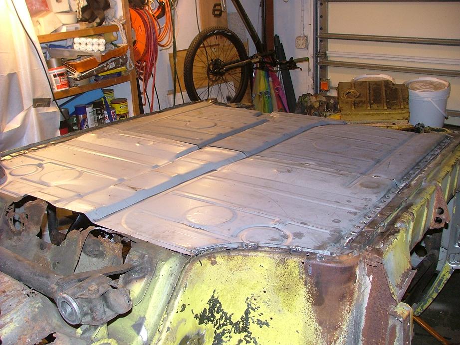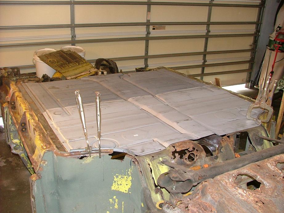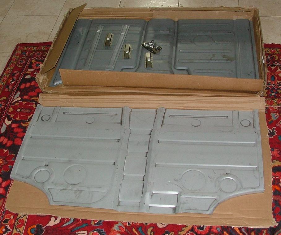I am doing the same thing, getting a 10 gallon fuel cell and adding more bracing to the front of the car. I am sticking with dual fuel pumps in the same location as before with dual relays controlled from switches in the cockpit. I am keeping all the original fiberglass fenders and buying new ones. Got new restoration design floors, including the special they are doing now on the rear floor, reinforcing tracks, and seat mounts. A great deal, I ordered 2 sets (1 for the red car). I think it took less than a week between ordering and having them on my front door. (IMG:style_emoticons/default/piratenanner.gif) (IMG:style_emoticons/default/piratenanner.gif) (IMG:style_emoticons/default/piratenanner.gif) ![]() Just gotta flip the car and weld these puppies in. (IMG:style_emoticons/default/welder.gif) John |