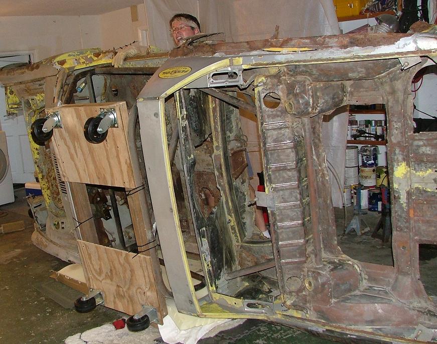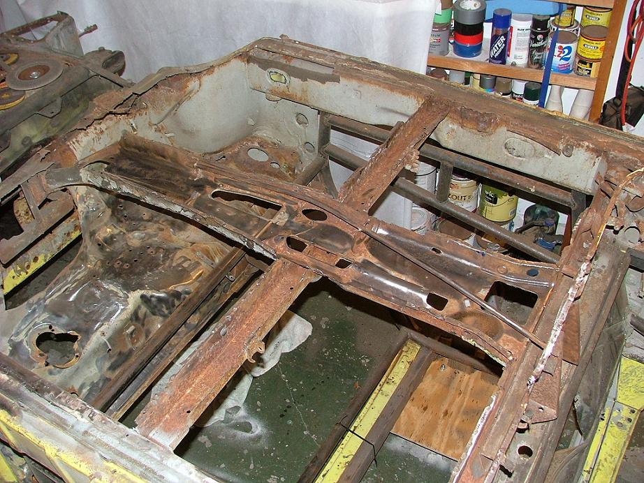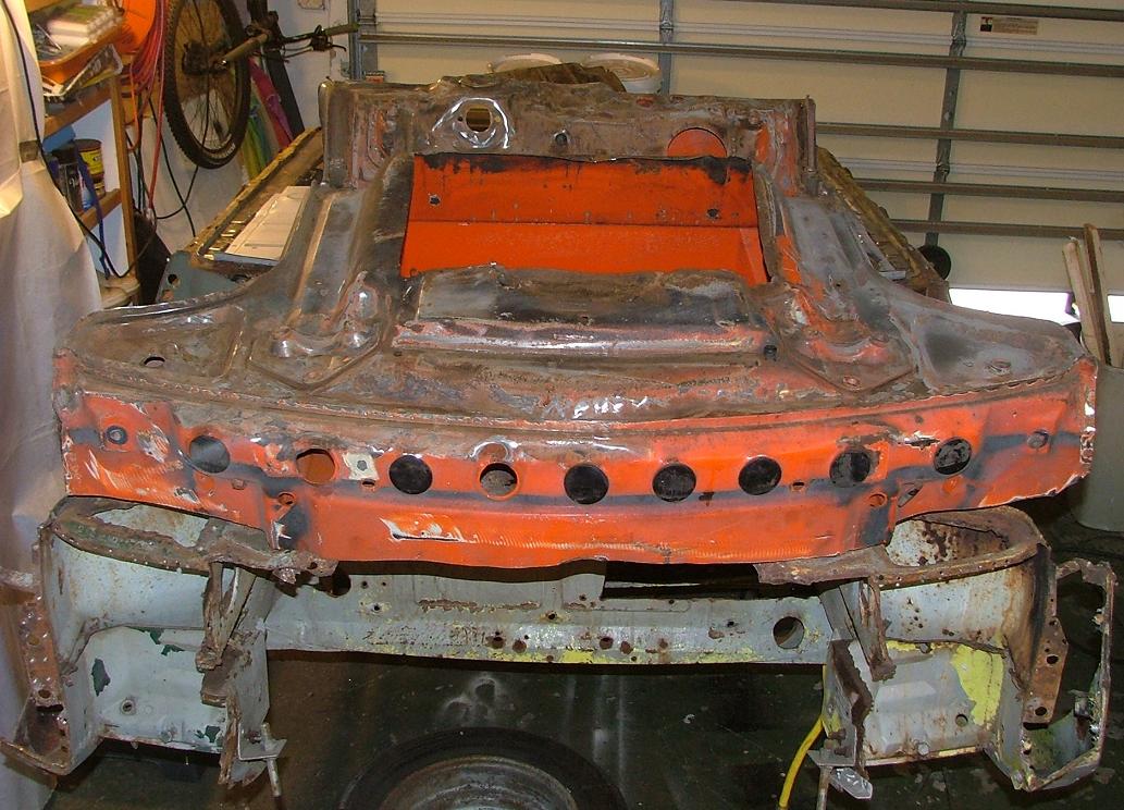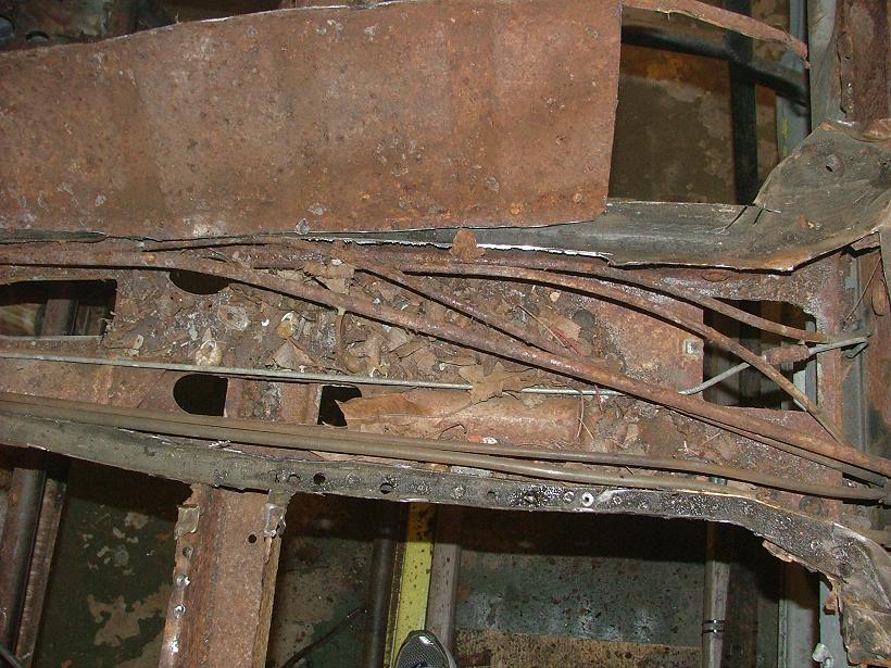 Its been mentioned before. (IMG:style_emoticons/default/happy11.gif) Drilled out the spot welds and removed the old floors. Had some help from Sean and his friend Mike, which saved a lot of time. Removed all the rusty tubes. The clutch tube is still in good shape. Will put a new accelerator cable tube back in and weld up all the holes. Will reinforce the clutch tube while I am in here. Started cleaning the dash area which has lots of holes, rust and damage. Much easier to get to this with the car upside down. ![]() After the floors, still have to fix the hell hole, front trunk, and front fascia. John |