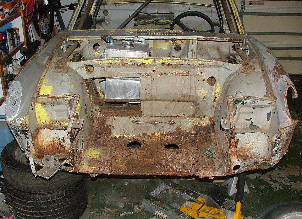 Thanks for all the comments! Peter: I had two pieces from two different cars. I think this made it easier to get them in. Trying to get one piece with the headlight buckets attached and all the lower trunk stuff probably would not have worked. The car narrows the closer it gets to the front, so you can't slide a piece in from the front without some major cutting of one side. I actually cut the fascia in half vertically to make fitting it easier, so it was three major pieces put in. Glenn: I left the reinforcement on until I fully weld all the new stuff to try to maintain the original shape. I plan to remove it once I start fitting the front oil cooler. John |