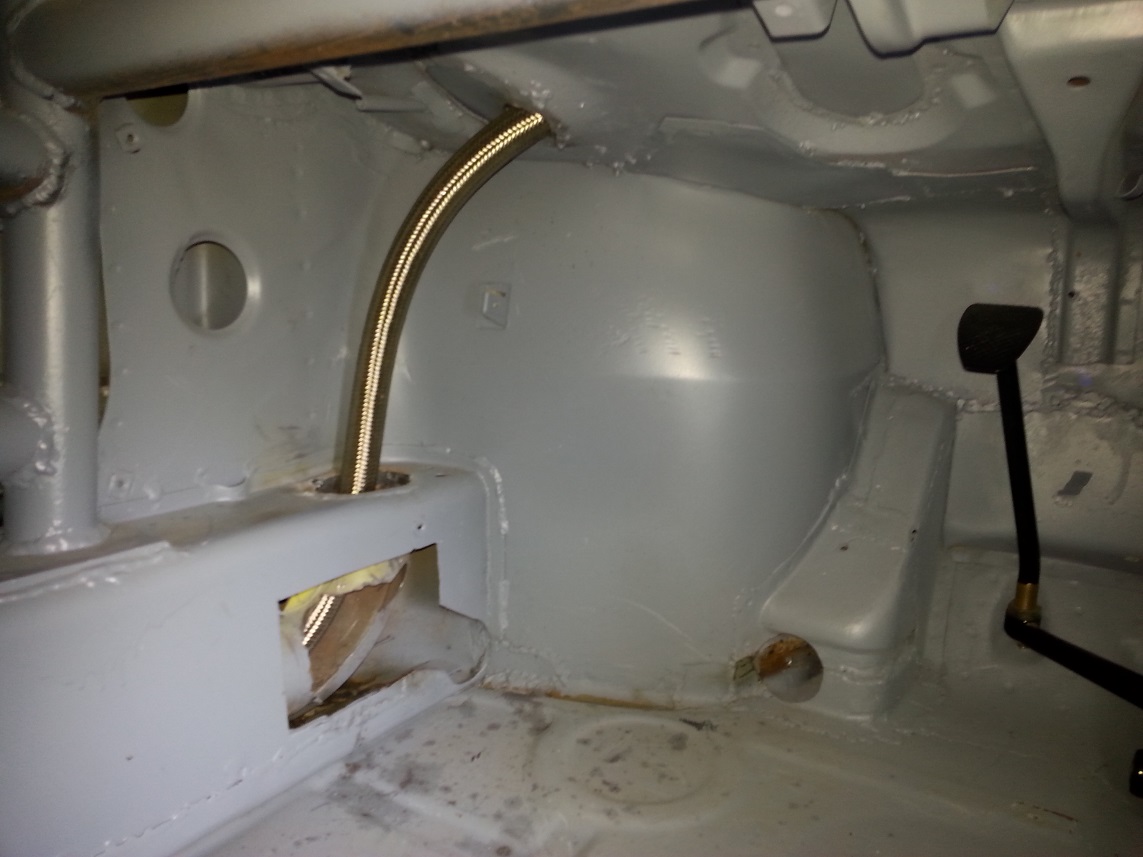 Rerouted oil lines the way the original builders did it. I will firesleave it to keep heat away from the driver somewhat. This is much better than what I had before. I will close up the holes I made and leave a service panel in case the oil lines need messing with. That -12 AN line is not very flexible and a real pain in the ass to work with. If the fittings are not perfectly aligned then they won't screw on.