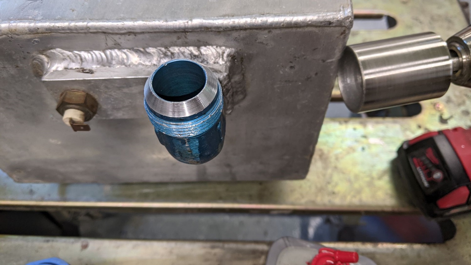 With the cockpit painted, I can button up a few things. The oil supply fitting on the bottom of the tank is pretty scarred up. I used a Koul tools hone to clean it up. This is a 37 degree diamond hone for resurfacing AN fittings. It looks like it did a nice job, I hope it does not leak. If you do have issues, there are soft seals which can be used on the face of the taper to fill small imperfections. They are called conical fitting seals (usually) and are made by a number of companies (Parker/SECO/Del/Voishon). https://www.aircraftspruce.com/catalog/hapa...l37fittings.php I haven't used this brand, but they are safe to use. Actually, a lot of 37/45 degree fittings on the Space Shuttle Oribiter used the Voishon version for added safety. (IMG:style_emoticons/default/sunglasses.gif) Car is looking great BTW! (IMG:style_emoticons/default/beerchug.gif) |