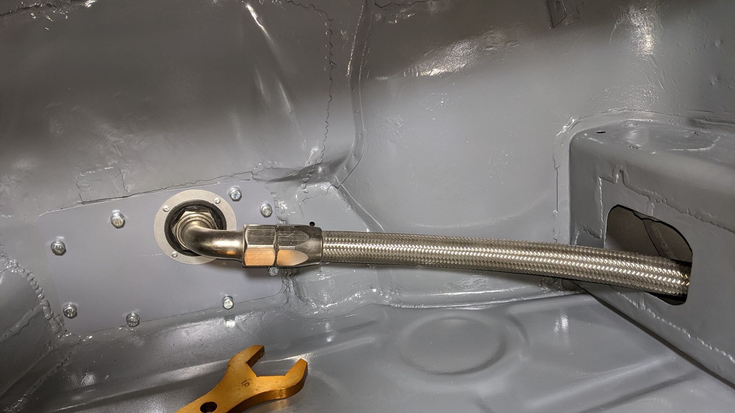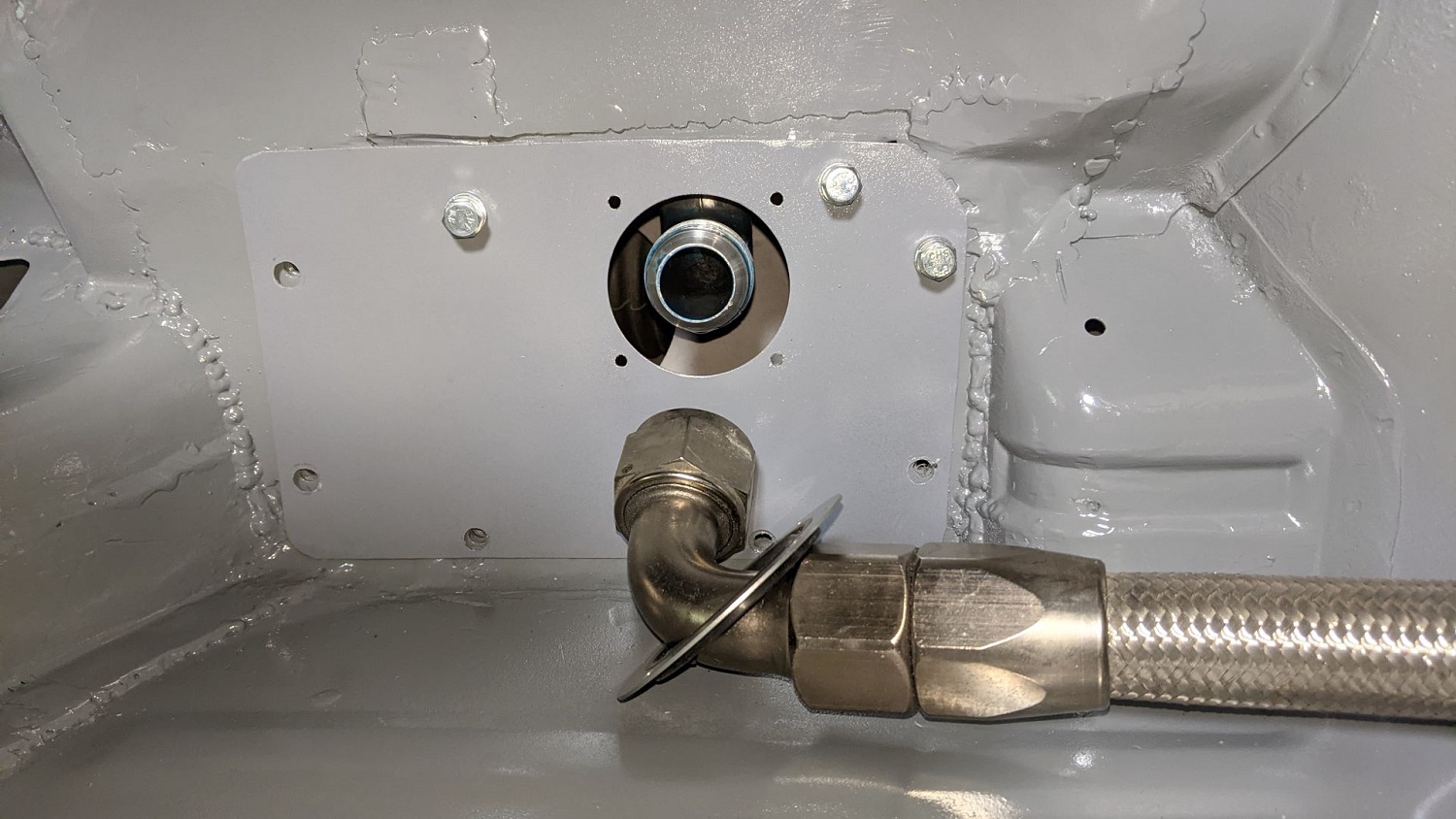 This is a 37 degree diamond hone for resurfacing AN fittings. It looks like it did a nice job, I hope it does not leak. Cut a hole in the very flexible rubber on the firewall sealing grommet and slide it down the -16 oil supply hose. Attach the oil line, slide down the grommet, drill and rivet it in place. I will add some edging where the oil line goes into the heater tube. Now the firewall is pretty much closed up. Taking off this service plate to connect to the AN fuel lines in the tunnel was a big help, and I think it was worth the effort. Very satisfying to get this done. John |