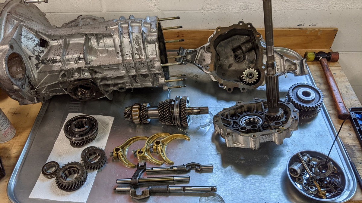The synchros and dog teeth are pretty worn out everywhere except 5th gear. Pulled it apart and replaced all the synchros and dog teeth. I also replaced the first/reverse slider and 2nd/3rd slider. The mainshaft bearing race was broken so that got replaced as well. I bought the chromoly bearing retainer, hoping it will keep the new bearing in one piece. John |