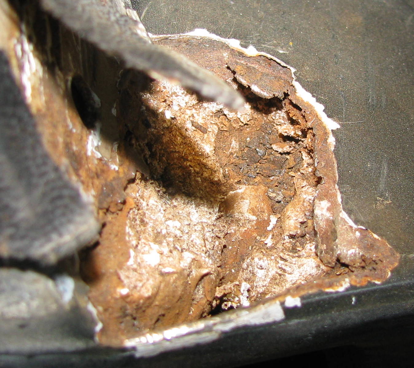 So - did VW-Porsche actually build 914's out of VIN order in early 1972 for the 1973 MY (&/or any other time)? Yes, all the time. We've had several other posts about this phenomenon in recent months. The white stuff you noticed may very well be factory seam sealer. --DD Dave - that's what's left after I dug out it in there solid to see if rust was below, which it was as seen in the pix. Could that be the filler stuff that they injected into some/all 914 body cavities? (IMG:style_emoticons/default/confused24.gif) .......... I think their trade name for it began with a "P" IIRC ... or what dealers injected as rust proofing? (IMG:style_emoticons/default/confused24.gif) ....... mine has dealer undercoating applied to the pan, but seems odd to fill for an originally CA sold new 914! ... & how would one tell the difference between the factory injected vs. aftermarket stuff? ... if you can tell?? (IMG:style_emoticons/default/confused24.gif) Whichever it was - obviously it did NOT work! (IMG:style_emoticons/default/dry.gif) |
