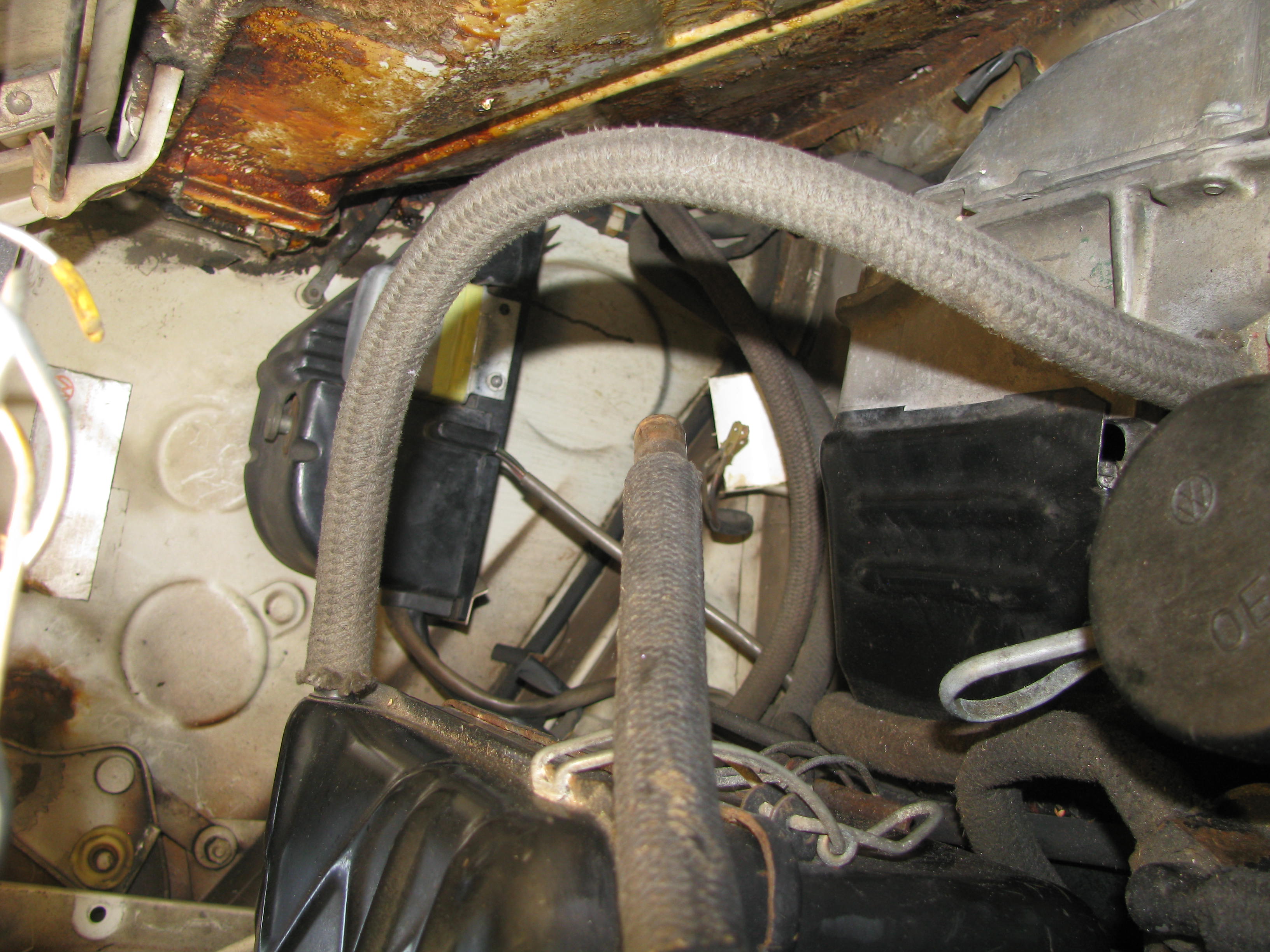 (Other prior pix started at my post #62.) Porsche Tech Svc Bulletin Fuel Pump Relocation & rust thru at Steering rack R strut beyond: Lower Firewall & Engine Shelf Rusted at pix: ... continued .... |