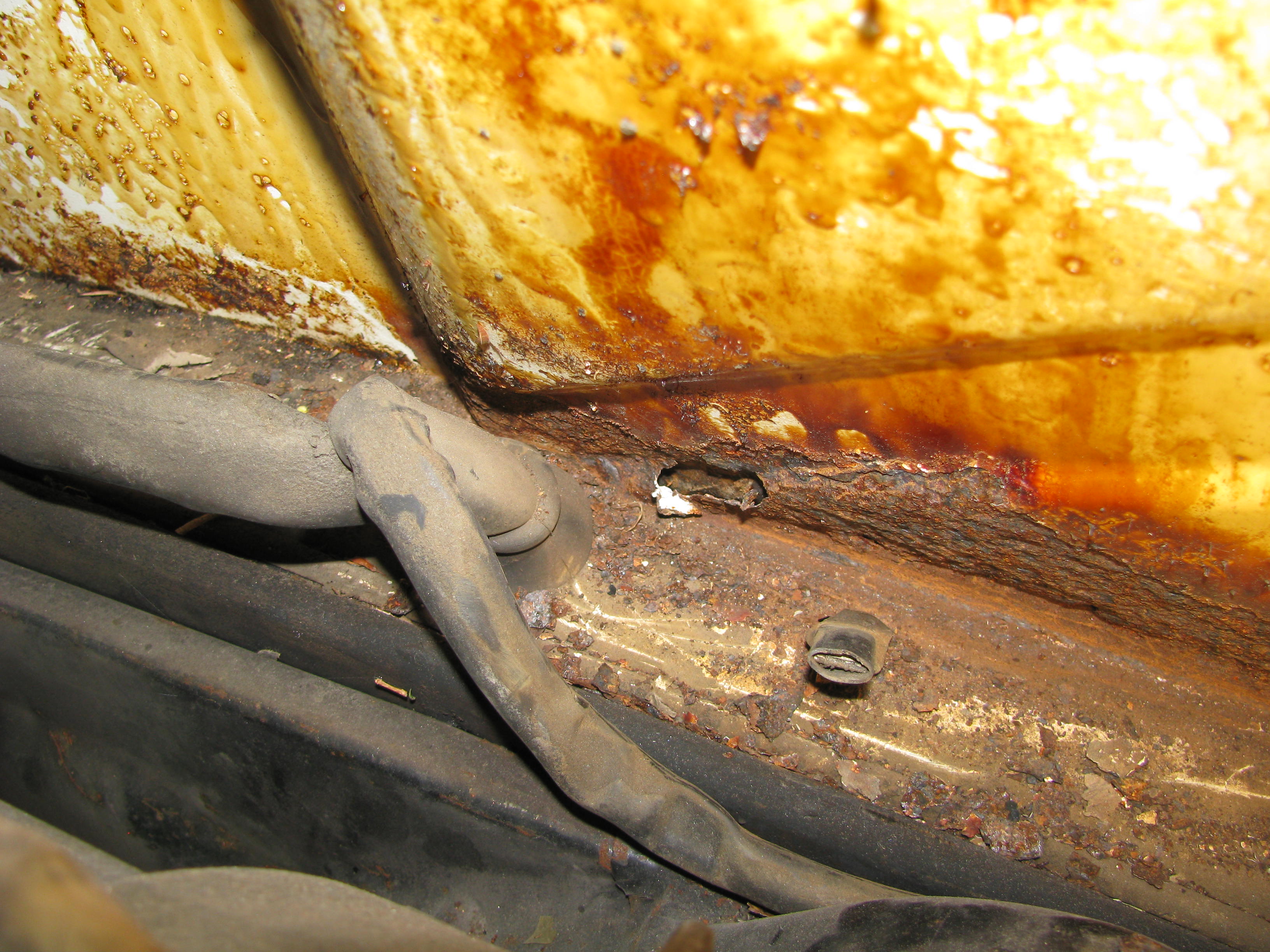 Well, I think I may have figured out how I got rust eating away at the underpan at the passenger side steering rack strut, after it went into storage "clean & rust free" in May 85, after a rustoration 3 years earlier! In looking through my old service records from the late 70's & early 80's - I noticed that I had the window washer fluid tack replaced because it had cracked & was leaking, as well as a couple of other times the hoses were replaced for leaking. In addition, as I've been stripping the old gal down for the resto, I've found that under the shrunken cowl seals were rusted through at the joints. So those 2 sources of water/washer fluid down into the bottom of the fuel tank compartment below the gas tank, eventually ate its way through over the 25 years sitting unchecked in storage in my garage! (IMG:style_emoticons/default/dry.gif) The other unexpected rust problem was on the engine firewall & ledge - where my early engine lid drip tray (without the longitudinal ribs adding rigidity) warped between the front 2 end & middle mount ppoints, allowing twin waterfalls down onto the heat/sound pad on the firewall, whose open backed sisal held the moisture neatly against the firewall & engine shelf to also eat away at those areas over time. (IMG:style_emoticons/default/sad.gif) The past 25 years of neglect didn't help the situation either - letting things go unchecked & unremedied for so long! (IMG:style_emoticons/default/headbang.gif) So I guess that adds two more suspect areas & causes to check when one is evaluating a 914 for purchase! (IMG:style_emoticons/default/dry.gif) RobW & others - I'm leaning more to the self-help solution, & expanding my skills & tool bin to accomplish this rustoration & body repair work - or at least more parts of it than I originally intended to do! (IMG:style_emoticons/default/smash.gif) (IMG:style_emoticons/default/sawzall-smiley.gif) (IMG:style_emoticons/default/stirthepot.gif) (IMG:style_emoticons/default/welder.gif) (IMG:style_emoticons/default/wacko.gif) ... I'd need to det a MIG/TIG Welder & learn welding though! (IMG:style_emoticons/default/welder.gif) |
