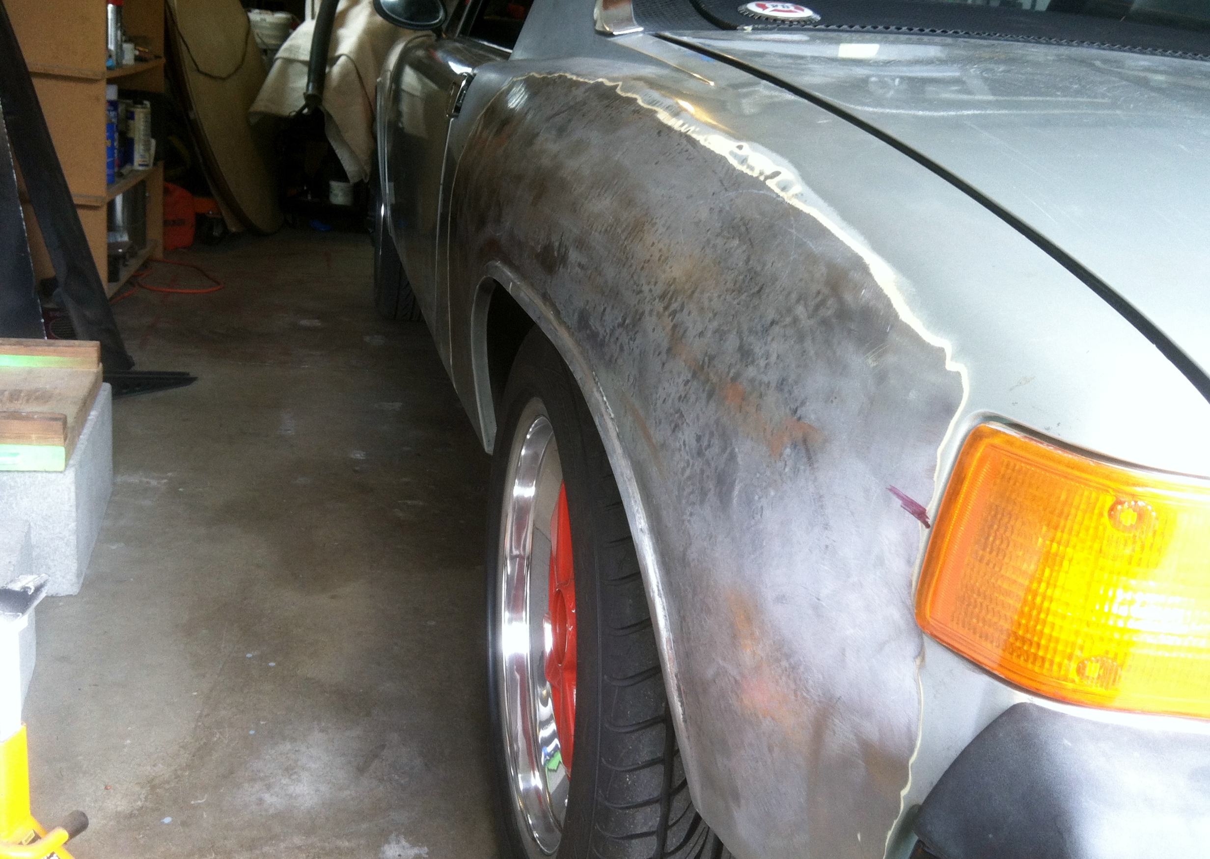 Started on the fender today and made some good progress (IMG:style_emoticons/default/piratenanner.gif) Now I am waiting on the shrinking disc and slapping spoon to come in the mail. Here are some pics: ![]() Nice work. I like round rears - especially on the 914. |