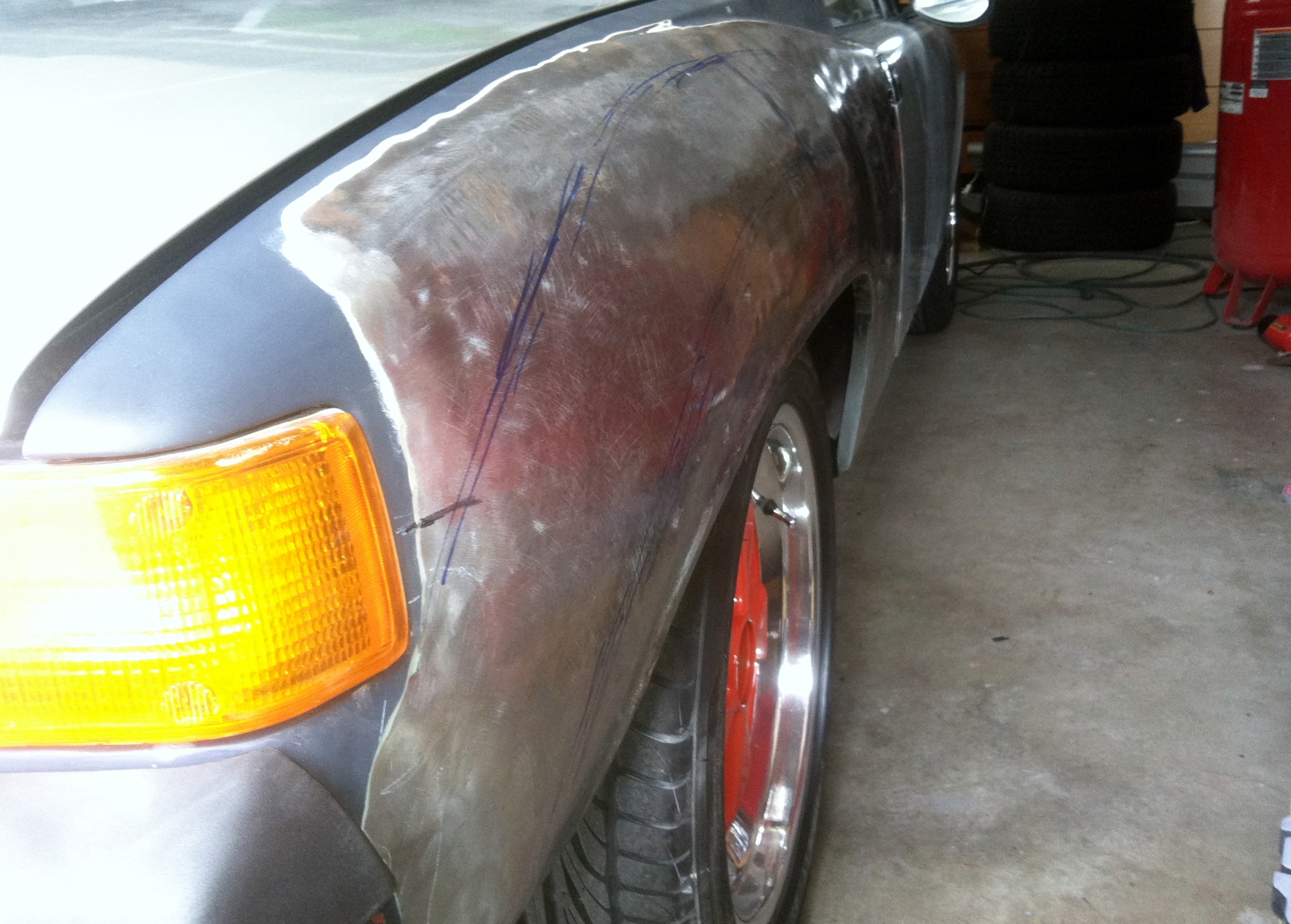So, I decided to go the CSOB route with the stretching of the rear fenders. Since the weather here in the PNW is still rainy and crappy (IMG:style_emoticons/default/bs.gif) I am using the John Kelly method of flaring my rear fenders.