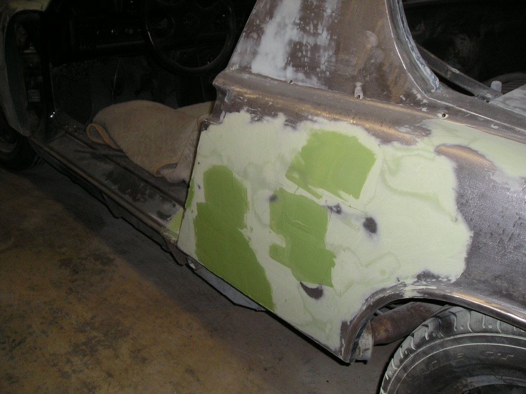 Update: I don't have any new pictures of the progress I made but it involves lots and lots of sanding! I have a few small spots of filler left to do and then finish sanding the finishing putty. I'll try to snap some pictures this weekend.