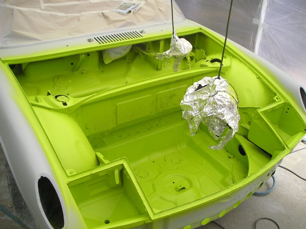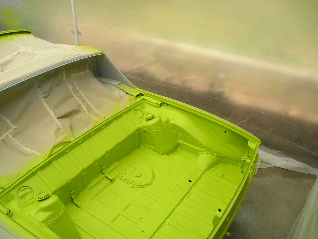 I came by to check on your status (and to get mine back out on the road to recheck the oil leaks). No one was home, some parts were in the temp booth, but nothing had been sprayed yet. Glad to see you got to spray some paint. I can't wait to see your progress when Kris and I get back from vacation. Chris |