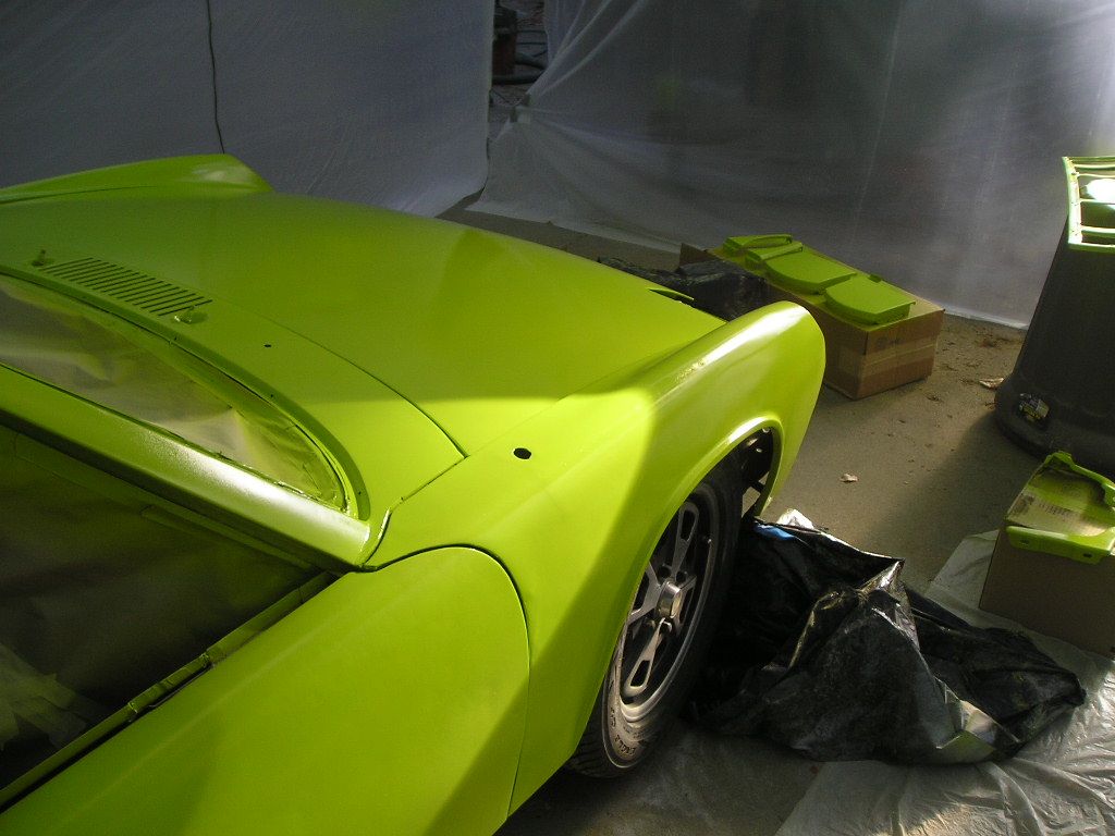 Okay there's some good new and bad news. The good news is that the car is painted. I laid down the color then clear.