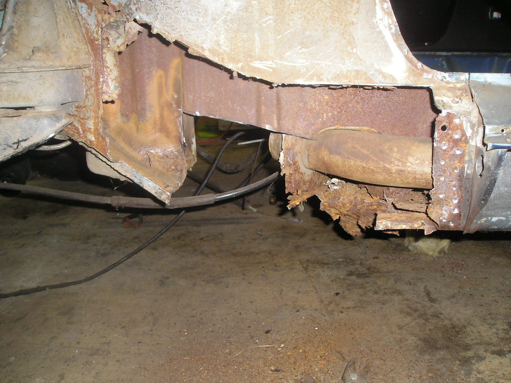 Well I was trimming for the floor and I found some more rust in the driver's side long. I wasn't sure how bad the rust was and now I know. I will have to replace this area as well before the floor goes in. Luckily I have a four day weekend coming up so I will have plenty of time to work on the car!