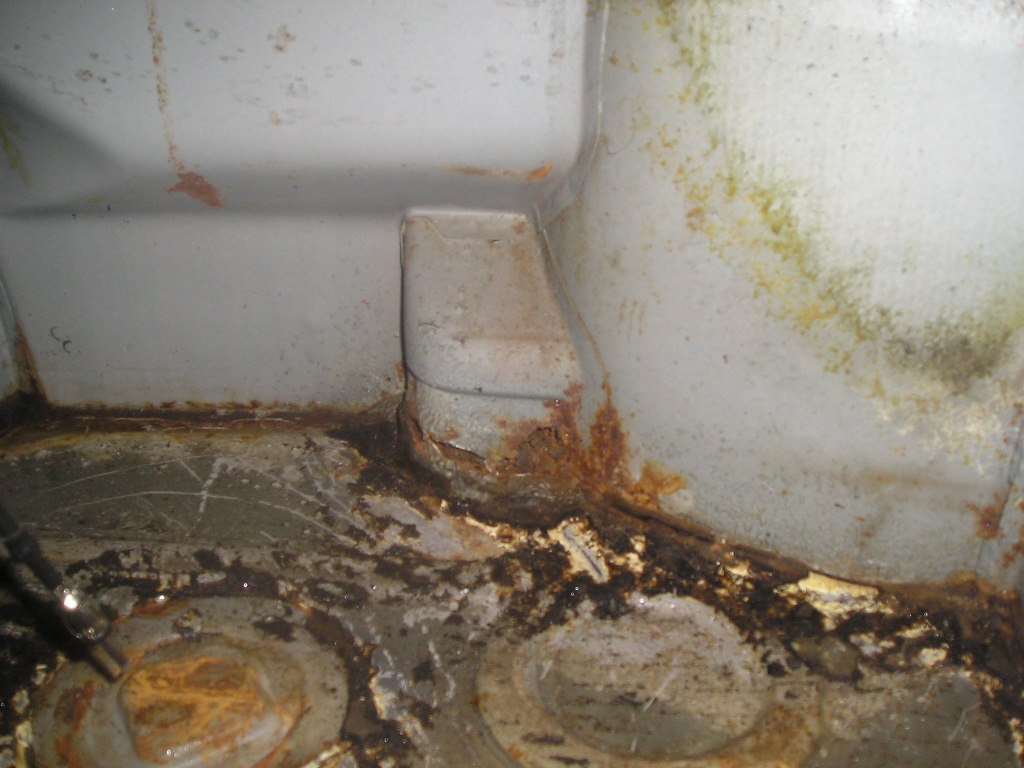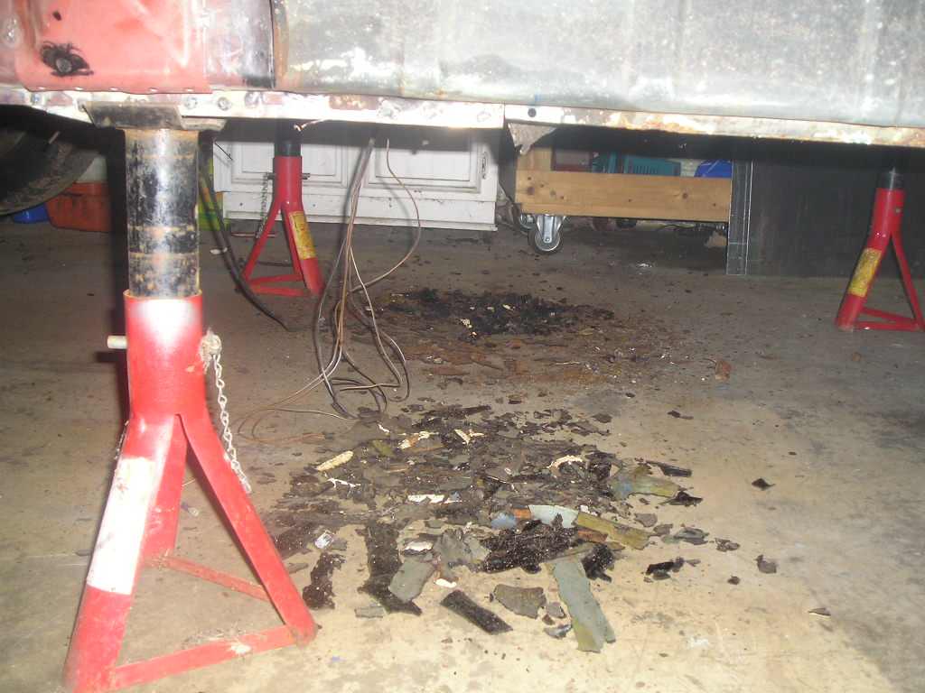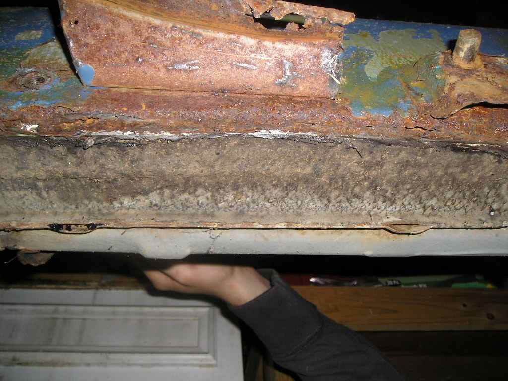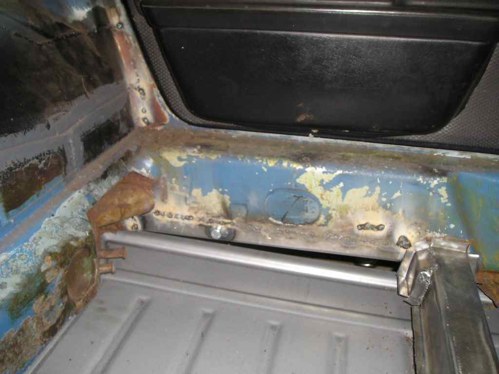 I cut most of the old floor out I also removed all the floor tar and found some more areas of rust. Here is a spot I will need to repair |