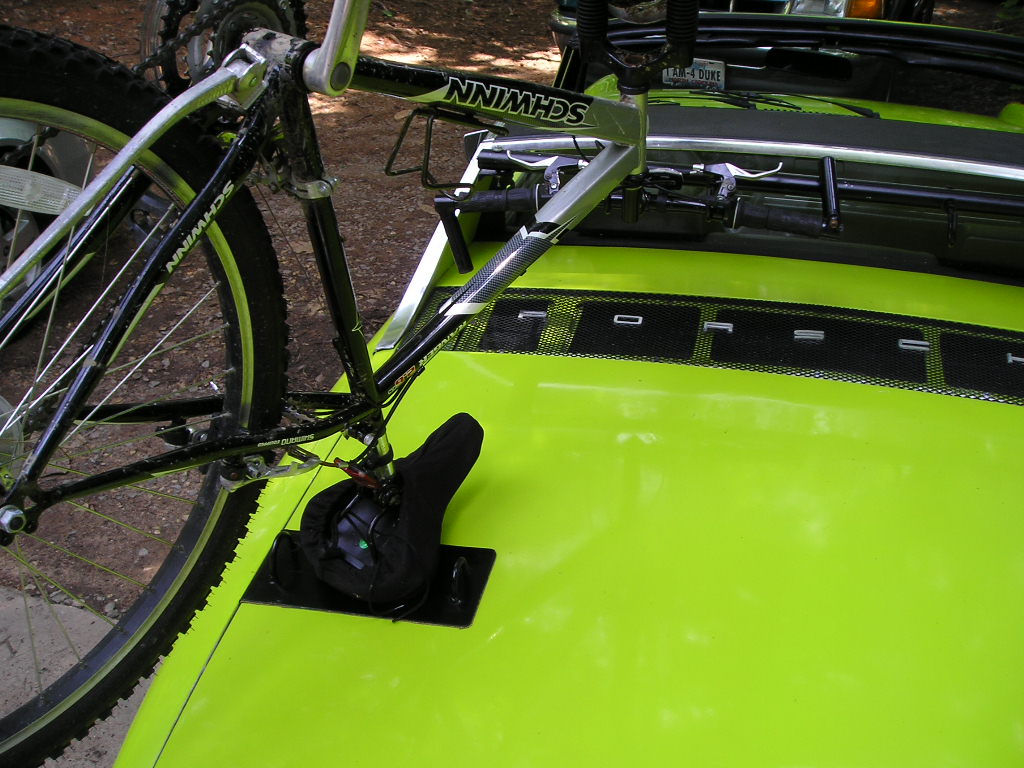 Yeah I know that's why I still have to make a bracket of some sort that evens out the load. Also the closer to the edge the seat is, the more sturdy the trunk lid is which is where I will have the seat located. The bike was just set on the lid for the picture.