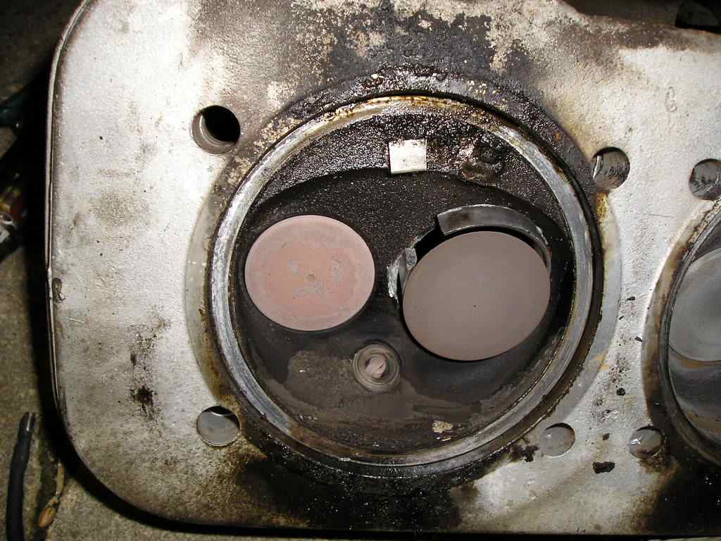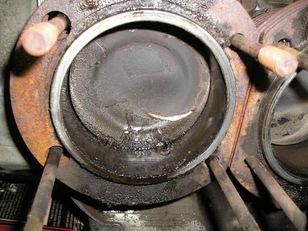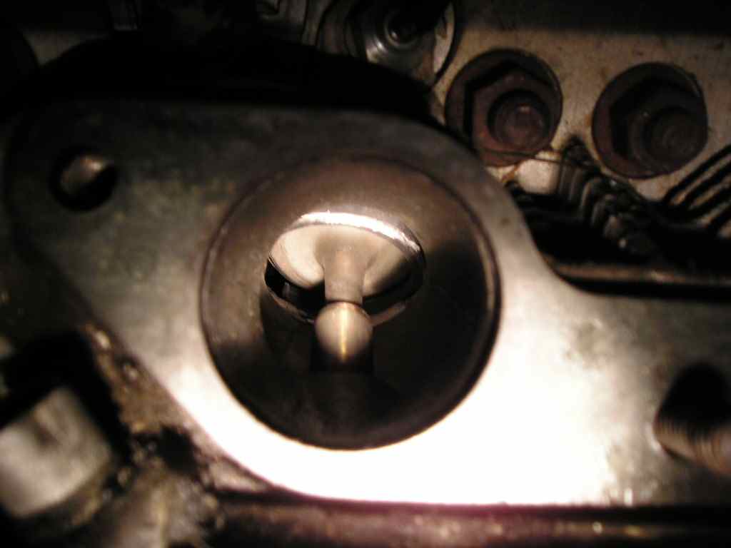 A picture from one of the heads... notice anything odd? Yup, I dropped a valve seat on an intake valve. (IMG:style_emoticons/default/sad.gif) I was hoping to reuse these heads on the replacement engine but hopefully I have another one I can use. |