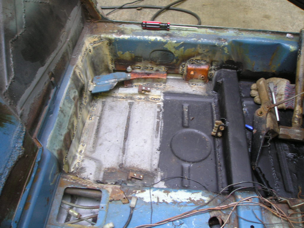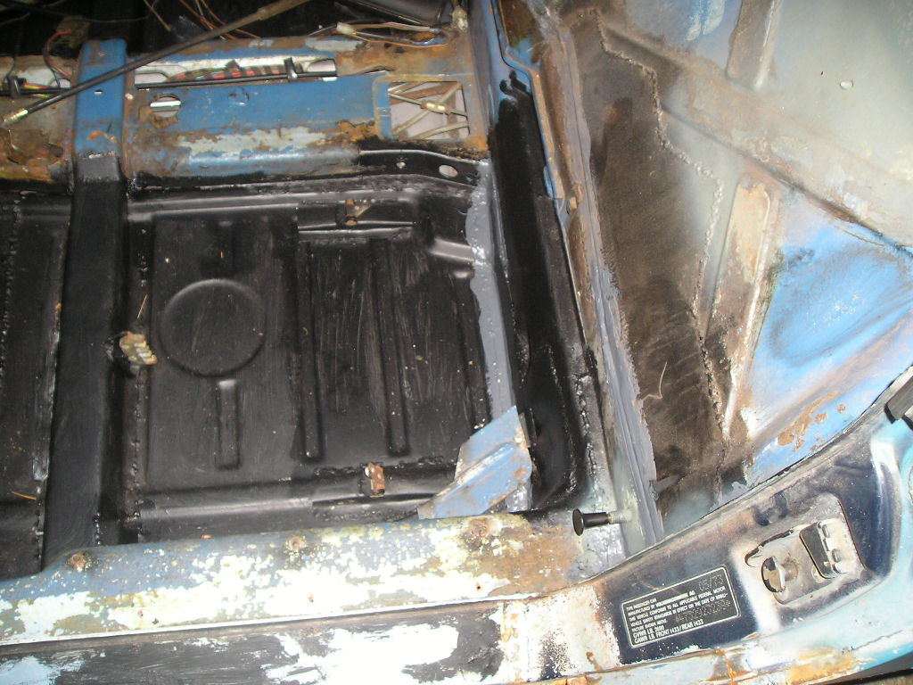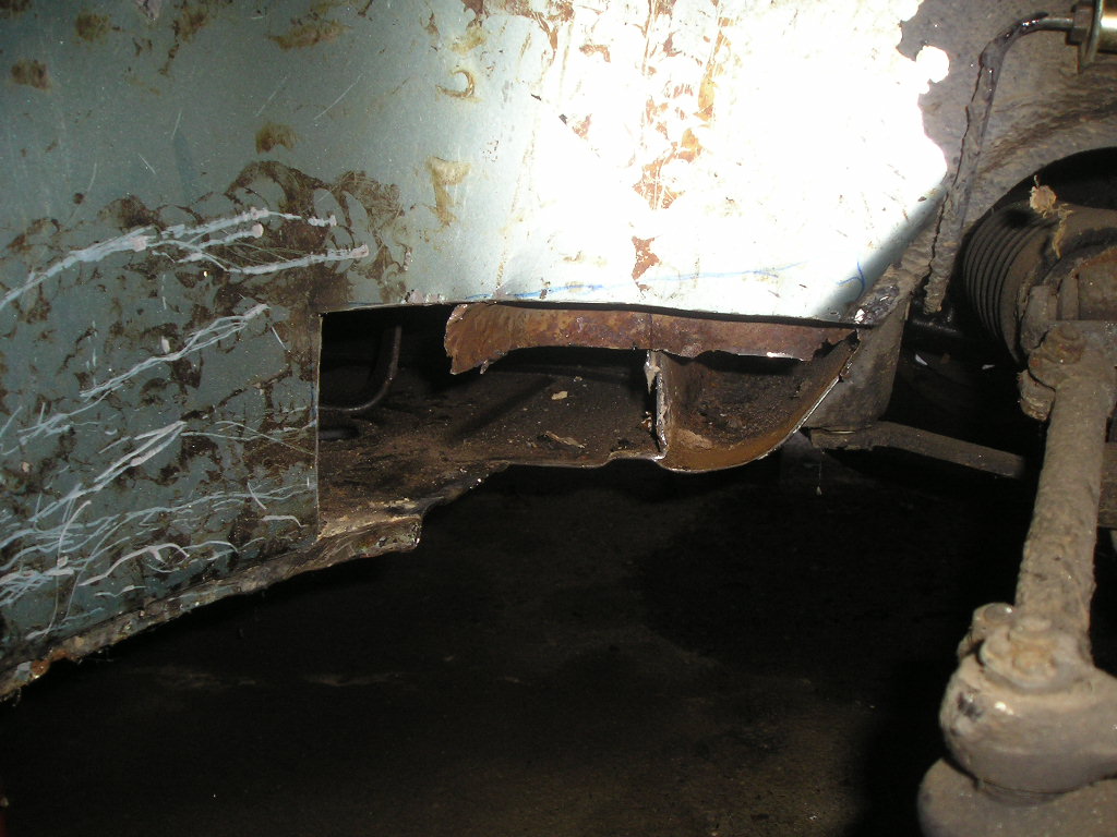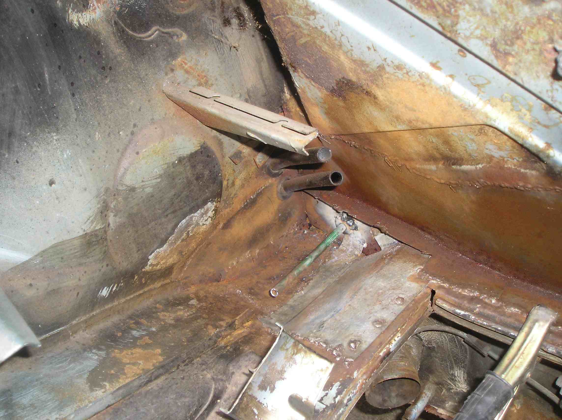 For those who are interested, I used 18 gauge sheet metal for most of the structural areas such as the longs. I used 19 gauge for other areas such as the firewall and center tunnel. Finally I think I used 20 gauge for the engine shelves. I was able to get most of my metal from a local guy that I found on TheSamba. The rust encapsulator that I use is Eastwood's product. I just make sure to clean the metal real well before applying and it has held up pretty well for me in the past. I also use Eastwood's seam sealer as well. As far as the car goes, I finished welding in the passenger side firewall piece and seat mounts. Today I welded in the driver's side firewall, the seat mounts, and the e-brake mount and cover. I wrote out a list of everything else that I need to do to the car so I will just work my way through the list over this holiday weekend. Next up on the list is to fix the rust under the gas tank/wheel-well/front passenger floorpan. Driver's side Passenger side Rust in the wheel well |