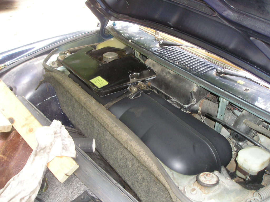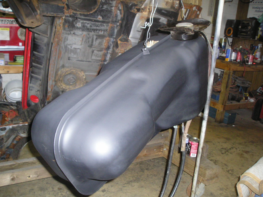 After I finished with the rust, I worked on the gas tank. The one that was in the car was pretty rusty on the inside and at one point it had even been repaired. I decided to switch it out with another one I had in storage. I painted the tanked and I also cleaned the sender unit before installing it.
