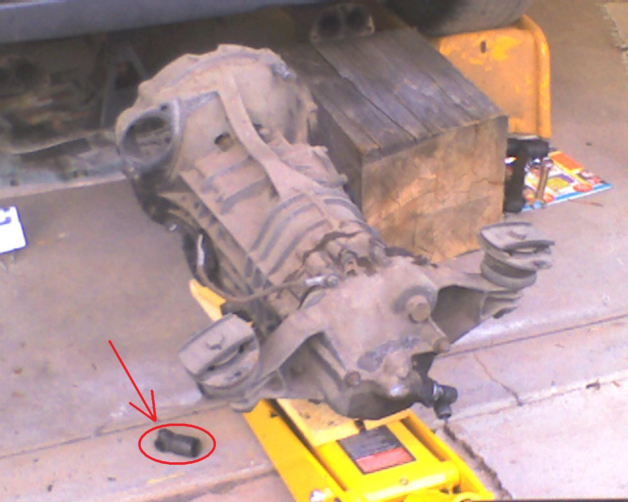 -You need to put a jack under the engine/tranny -Remove the axles, cables, starter wires, etc (you should already have the battery detached by now) -Remove the 4 bolts and nuts that hold the rear mounts to the body -Lower the rear part of the drive train - Place a cinder block with wood on top of it under the square boss at the back of the engine - Place the jack under the tranny - Remove the 4 bolts/nuts for the tranny to the engine (remove starter) - Carefully move the tranny back from the engine It weighs 70-80# so you can man handle it. |