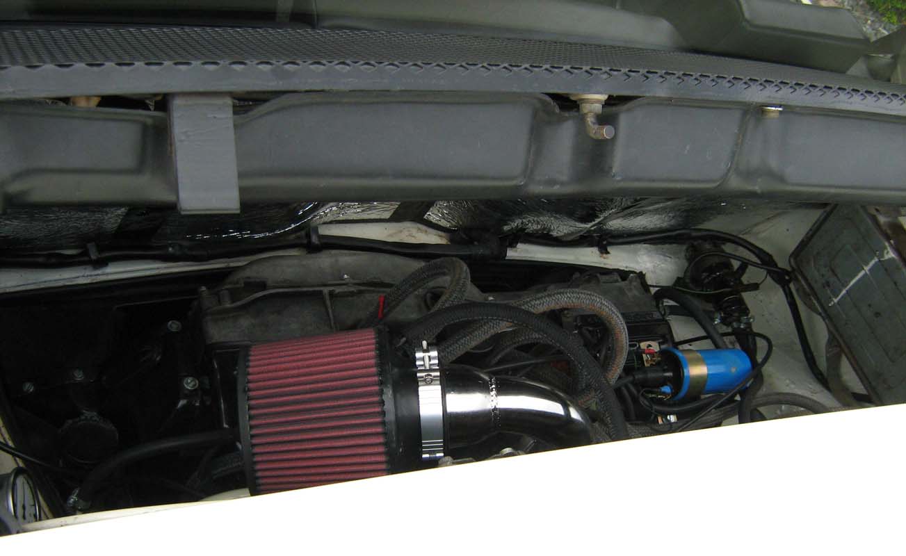 When the engine was back in the car I drove it without the back window and the engine lid, wow! At 4000 rpm and above its just goes WRRRRRRROOOOOOMMMM (IMG:style_emoticons/default/piratenanner.gif) , the intake is about 2 feet from your right ear and the feel is race-ish, more power? I don't think so! Maybe it revs a little bit more aggressive above 5000 rpm, but with a stock type 4 you don't want to be in that area to much (IMG:style_emoticons/default/dry.gif) With the window and engine lid (with the raintray) back on the car the soundlevel is acceptable, I still drive with the filter and love the sound of the engine, but don't expect more power |