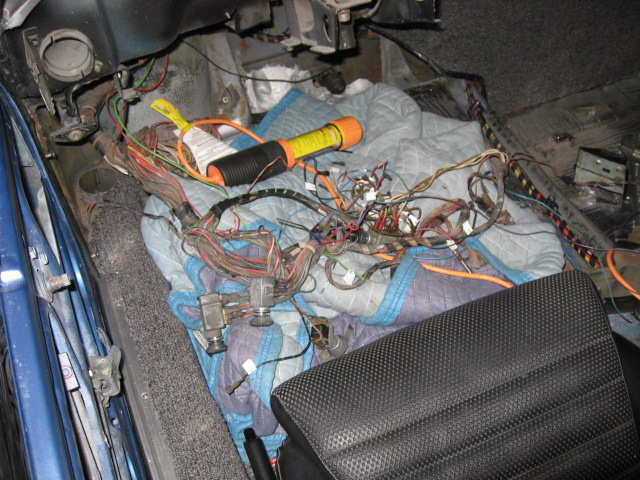 The dash frame was hacked up as well to house the computer and some hack job on the vent controls since they had to move to make room for the computer, so today I decided to pull the dash frame so I could return it to stock condition. I labeled wires I pulled off the gauges and pulled the switched out of the dash without pulling off wires.