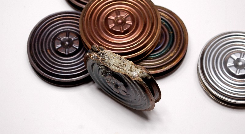 #2- copper, 3 pleats. This is a stock diaphram from a riveted MPS. It is ruptured.