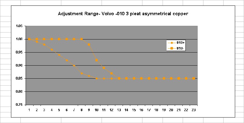 #4- stainless steel, 3 pleats. This one is a bit of an enigma. It is identical to stock except that it is made from stainless (see chart below). The workmanship is perfect. It is from a rebuilt MPS. Interestingly, it is the MOST COMPLIANT of all of them, while most steel ones are reported to be stiffer. The other part of the enigma- the aneroid cells from this MPS are also stainless- same alloy. My suspicion is that this is a late Bosch rebuilt. Who else would make stainless cells, because the cells don't fail very often, so there are lots of spares available out there, and the cells are pretty complicated to make...