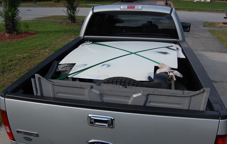 Pulling an empty trailer back was easy, almost too easy. The trailer is aluminum and very light. It was jumping off the ground when I would hit bumps. I could see the tires come off the ground. This would also jack the truck all around and the ride was like a old roller coaster. I stopped at a Lowes and bought 250 pounds of playground sand in bags and put them in the back of the truck. This helped the ride quality of the truck a whole lot. Today I took the sand back to Lowes and got my money back. I also borrowed a spare tire from Northern Tool. Returned that today too.