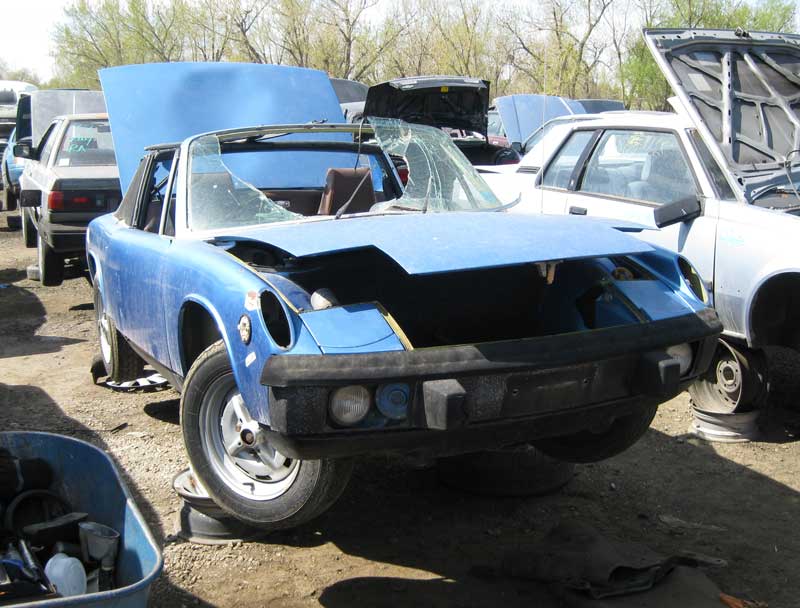 So, last week my son calls me in the middle of the day saying that he found a 914 in the local pick-n-pull lot. He is a thrifty (broke) college student always on the prowl for Subaru parts. He sends me a picture on the phone, and I bail out of work, grab a change of clothes and am at the car an hour later. Sure enough, it's a fairly complete '74 1.8 liter. I'm not sure about you guys, but finding a 914 in a junkyard here in Colorado is pretty rare. This poor car was pretty beat down. It was obviously care for at one time, then looked to be left in a barn or garage. Not a lot of sun fade and the rubber parts were still soft and pliable...but plenty of mouse droppings and nests, pounds of it! Rust - plenty of that too. Completely rusted floors and longs on both sides. Even so, there were plenty of good parts to harvest. I spent the rest of the day till closing and the following morning stripping the car. It just goes to show that you never know where one of these cars will show up.