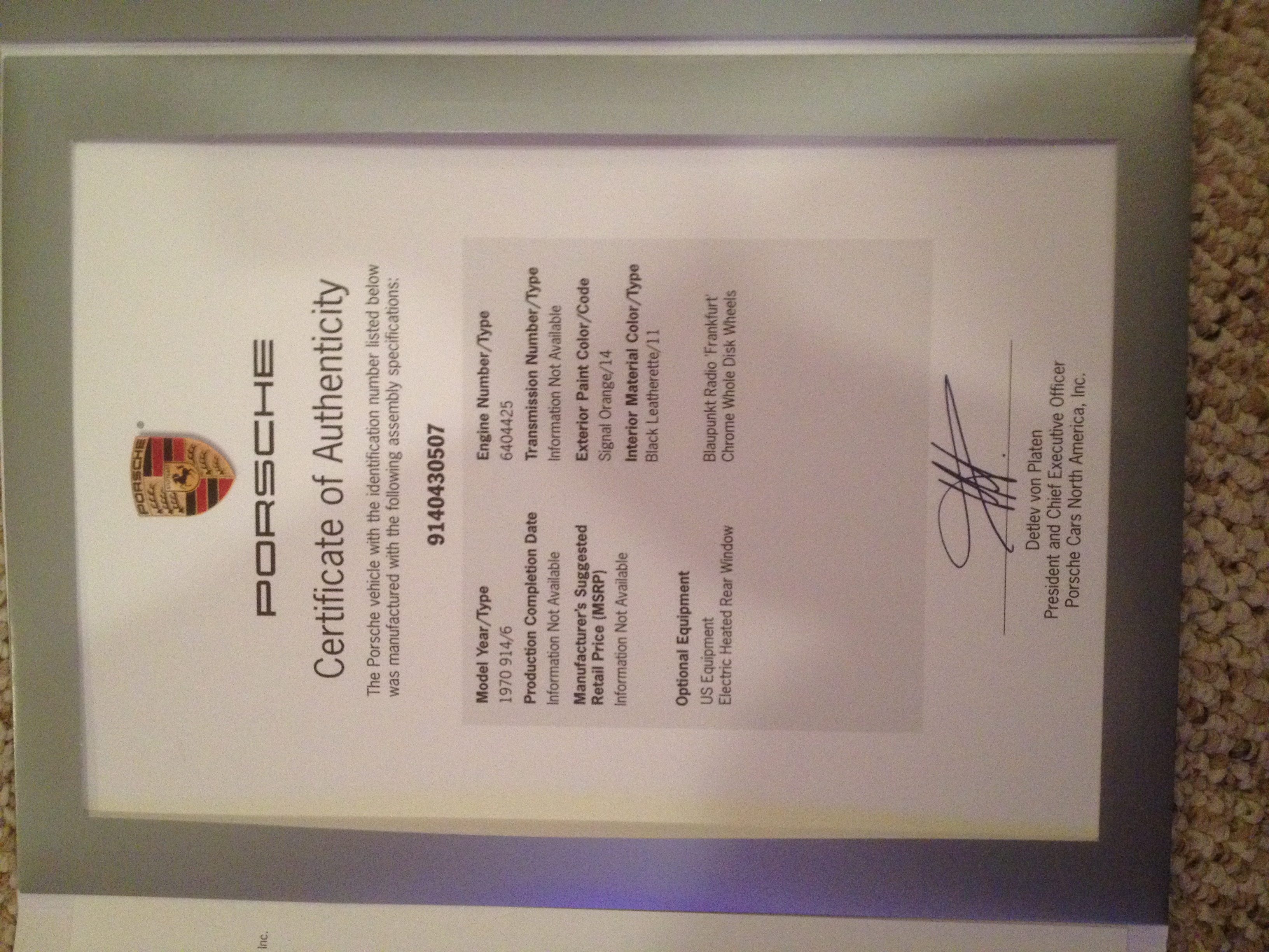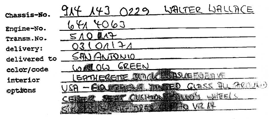 Chassis 9140432315 & case number 6405509, which match the COA I recently received. It's a US spec car BTW