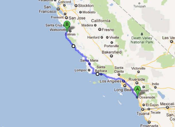 Heck! That's a good offer. Looking at the map Santa Maria appears to be about half way so lunchtime might be doable for any of us that want to stop. All those in favor, say 'Aye!'