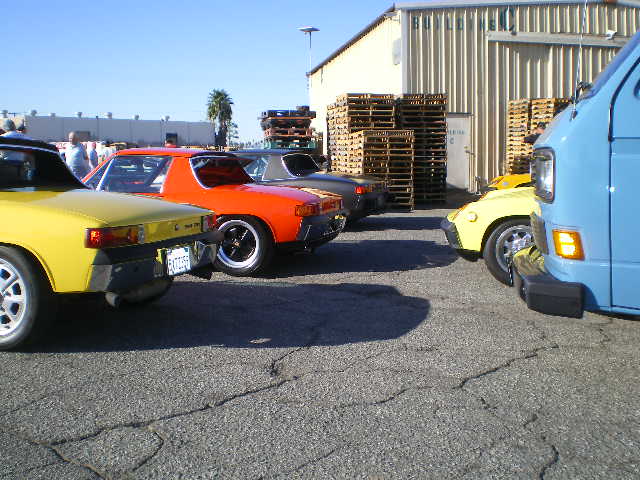 From the activity, it appears that this was the second largest event we have held. Some actually mysterious people showed up .. Brandon, Scott Kline (nice lady there Scott) & the infamous SammyG (without the Hawaiian shirt). I didn't count, but maybe 20 - 25 sellers and 200+ buyers. 4 Volkswagen Vans (cool), 25+ 914s on display, one UHaul truck, one Lotus and the usual assortment of assdraggers ............ Lot's of decent parts.