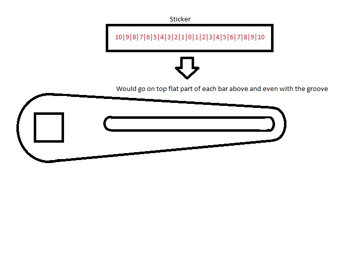 I remember back when you introduced these, and Andy brought up the same point. I am thinking that we could have a batch of stickers printed up that would make for easy indexing. Just a clear sticker with black or red hash-marks every 1/4 inch. Start from 0 in the center of the groove and count outward in both directions. This would allow the sticker to be used on both sides and make it easy to index the drop-link. My crude illustration is below.