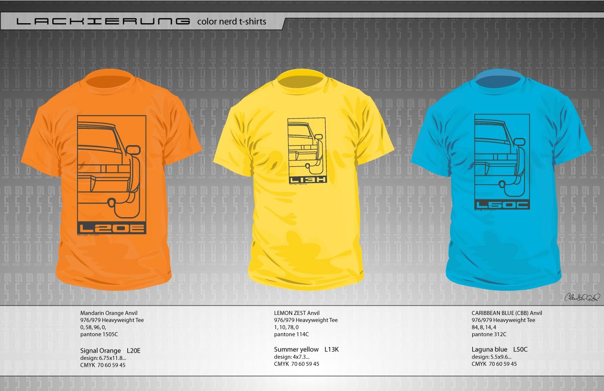 The concept is pretty simple -- lackeirung color nerd shirts. The each shirt color has a 914 color code, with a small upside down "answer" at the bottom of the the image.