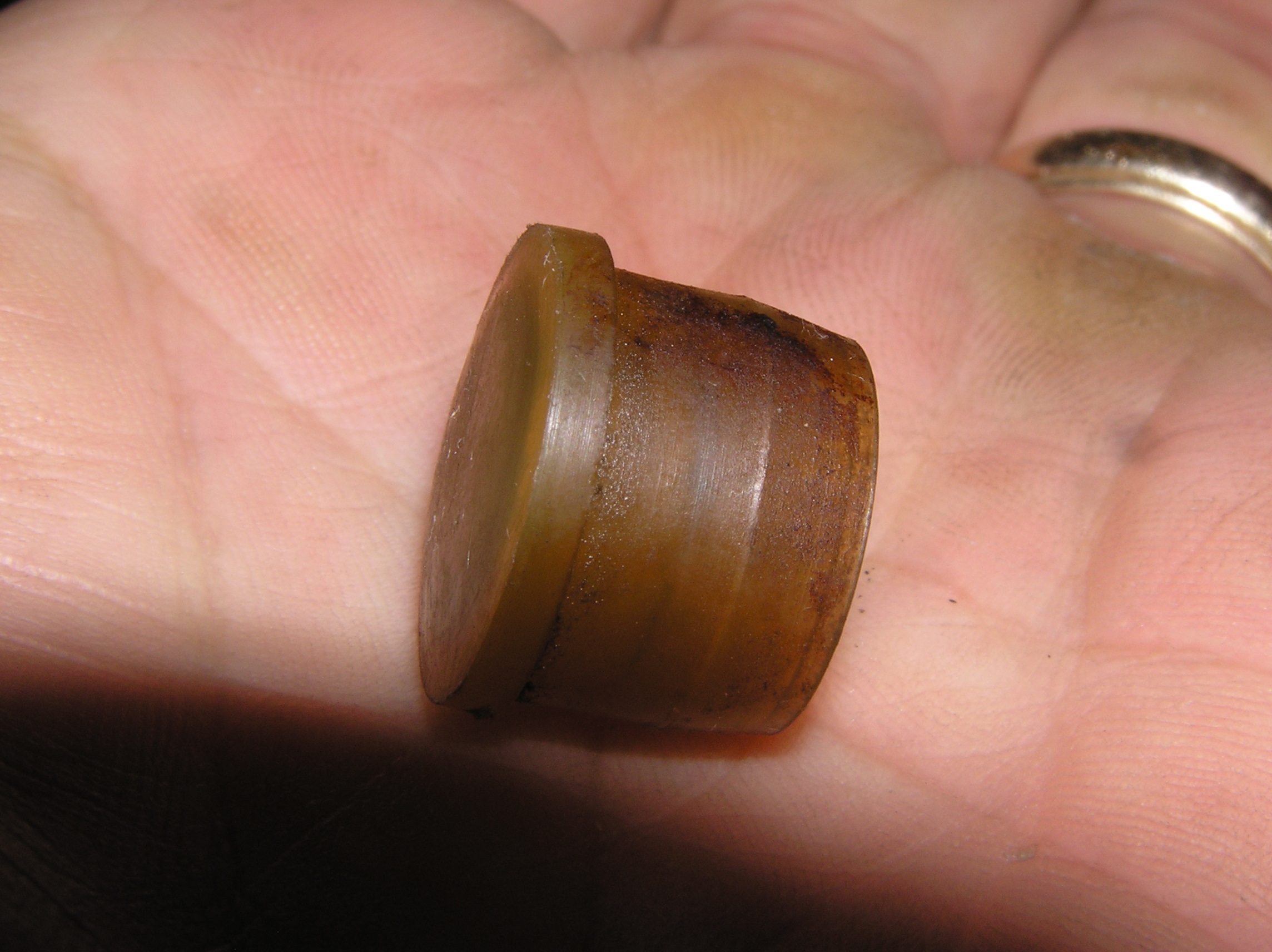 This looks like the plastic plug that goes on top of the threaded holes for the three suspension bolts to keep the water out ...
