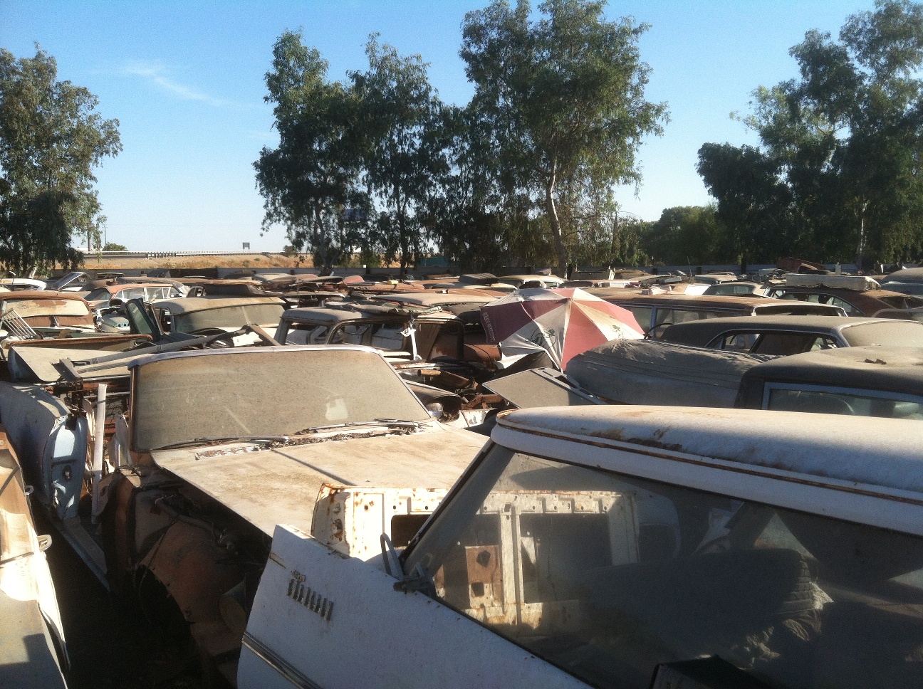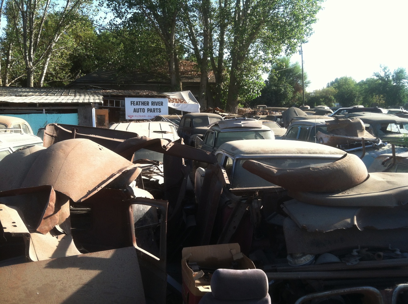 Saw this from the freeway and had to turn around. Bone yard with many classic cars. Who new they still had these in California. They had junkers and complete cars. If I ever build a rat rod or lead sled, this is the place to go. By chance today was customer appreciation day, They had a whole pig roasting in the BBQ, music, beer. Cool place!